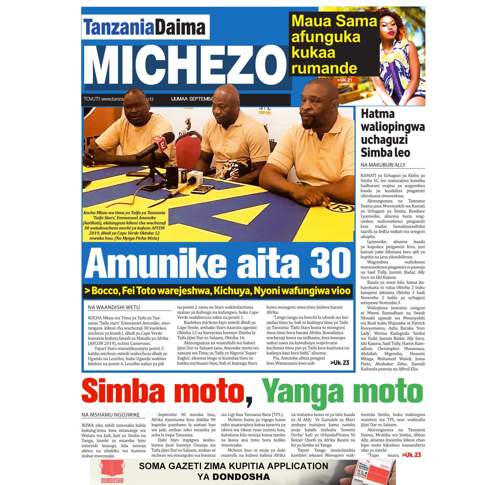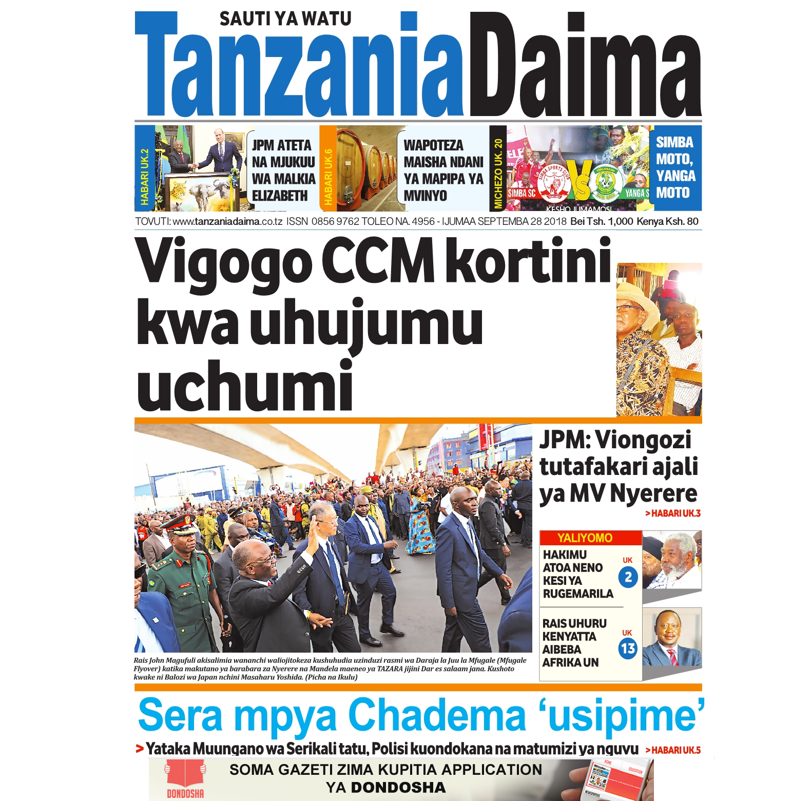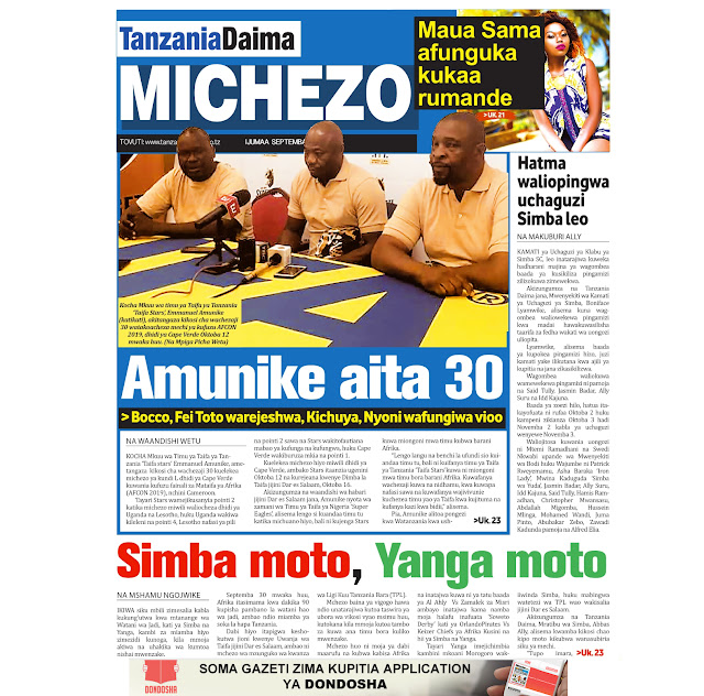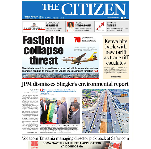 Magazeti ya Leo Ijumaa 28/09/2018