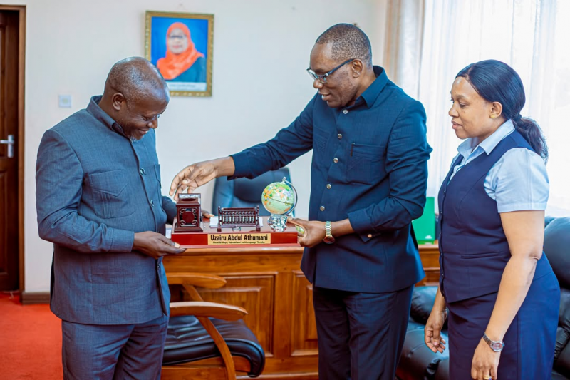 Meneja wa Benki ya CRDB kanda ya Pwani Bw. Badru Idd (wa pili kulia) leo Tarehe 03/02/2026 ametembelea ofisi za Manispaa ya Temeke kwa ajili ya kumpa kongole Mhe. Uzairu Abdul Athumani kwa kuchaguliwa kuwa Mstahiki Meya wa Manispaa hiyo