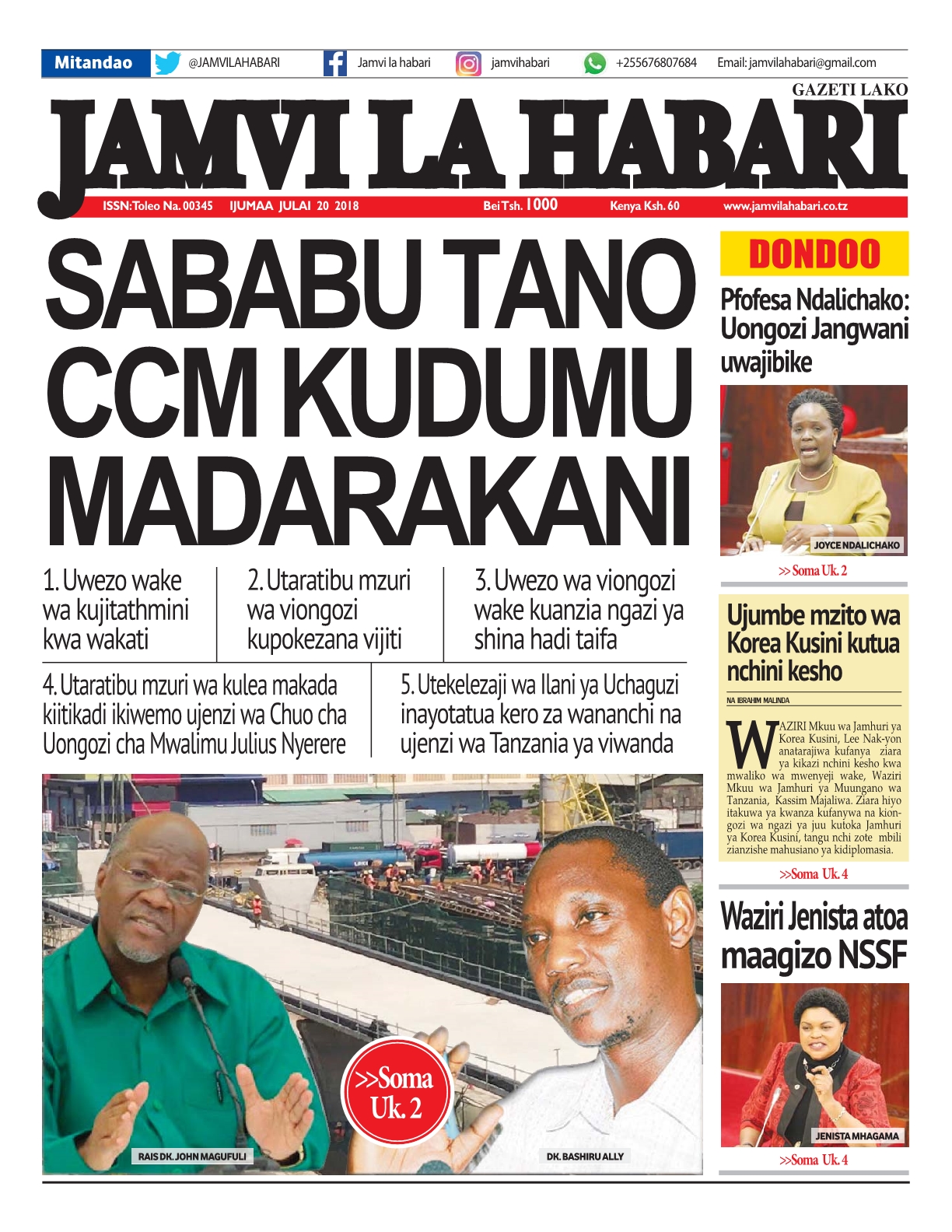 Soma hapa magazeti ya leo Ijumaa tarehe 20/07/2018.