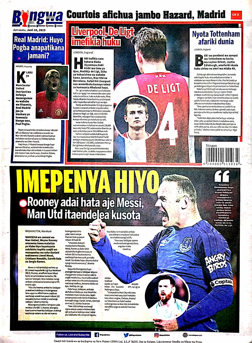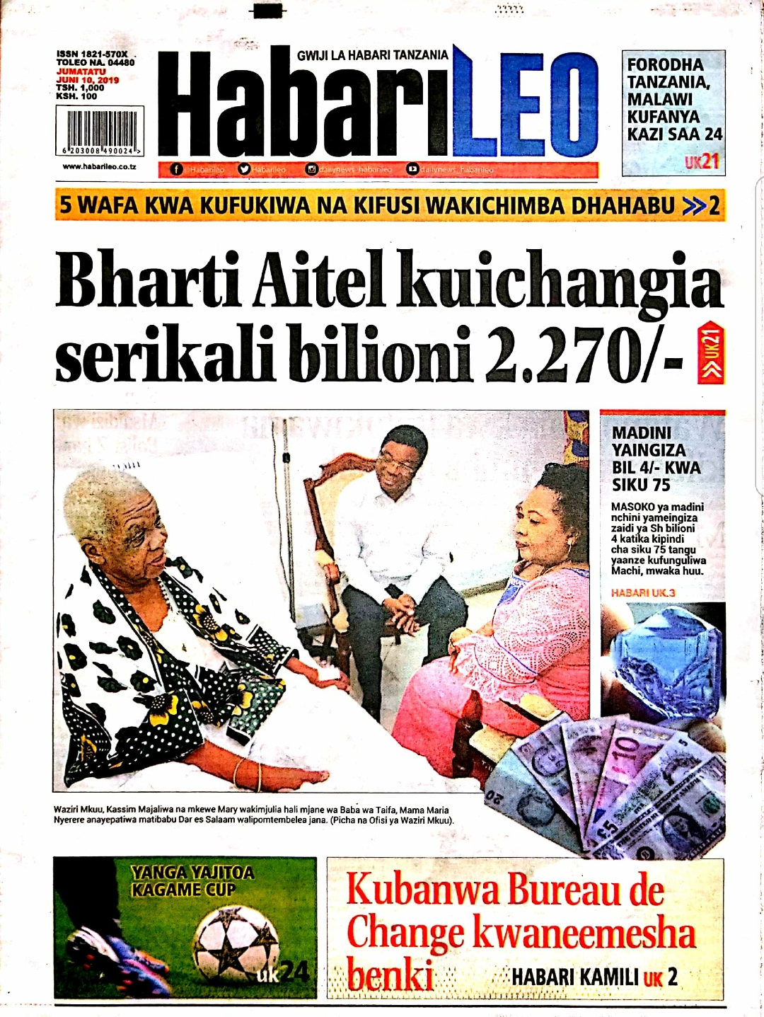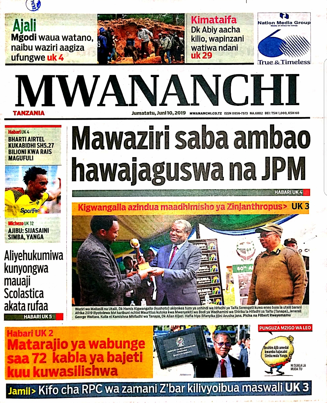 Soma kurasa za mbele za magazeti ya leo Jumatatu 10/06/2019