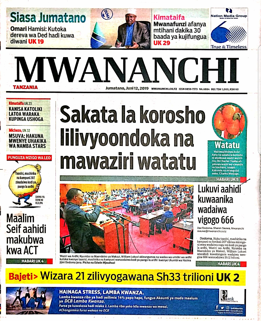 Soma kurasa zote za mbele za magazeti ya leo tarehe 12/06/2019