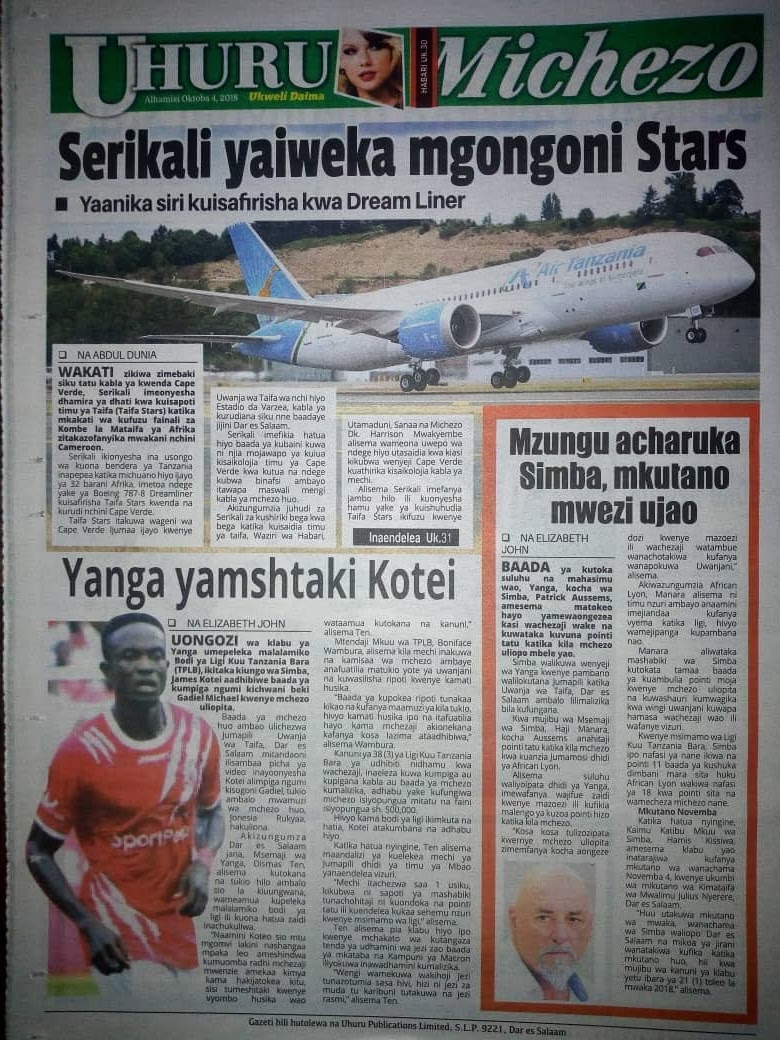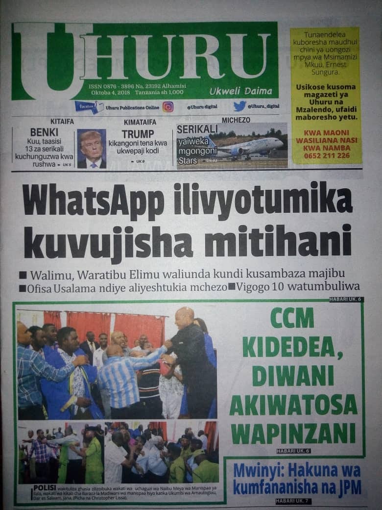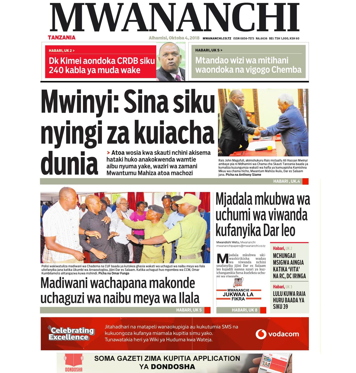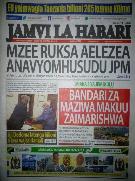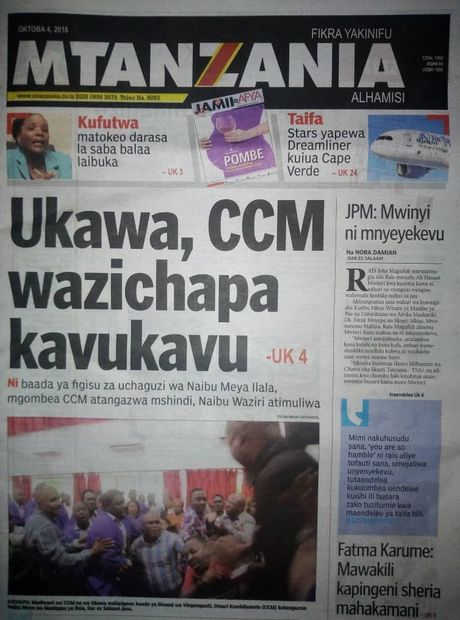 Soma magazeti ya leo Alhamisi tarehe 04/10/2018