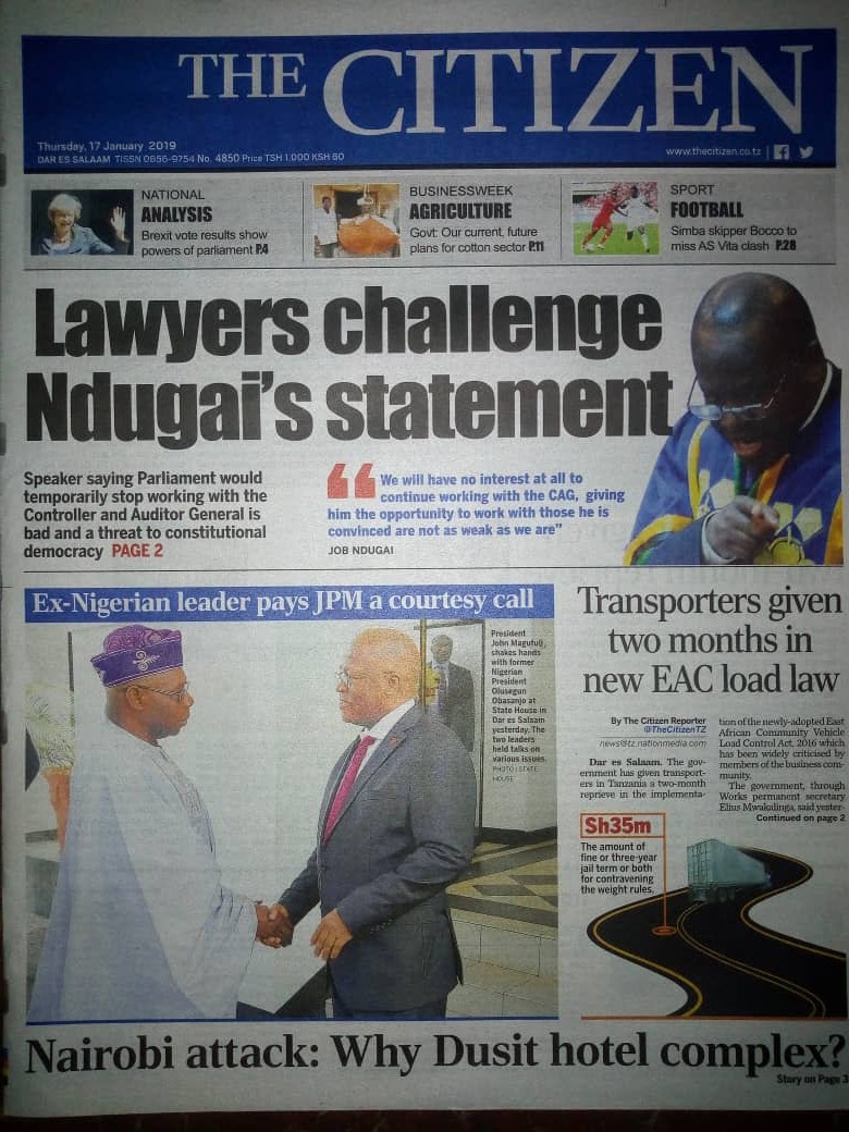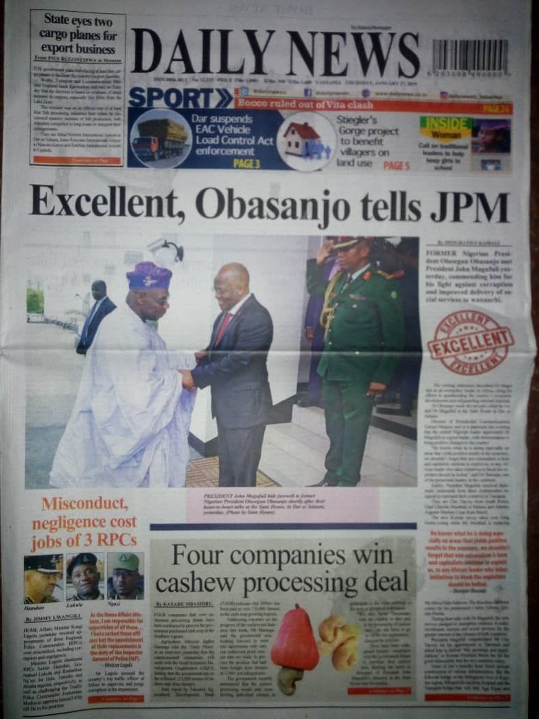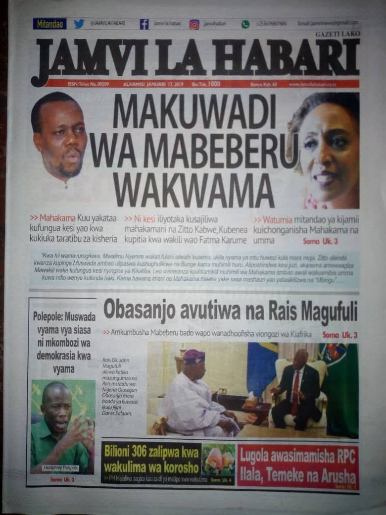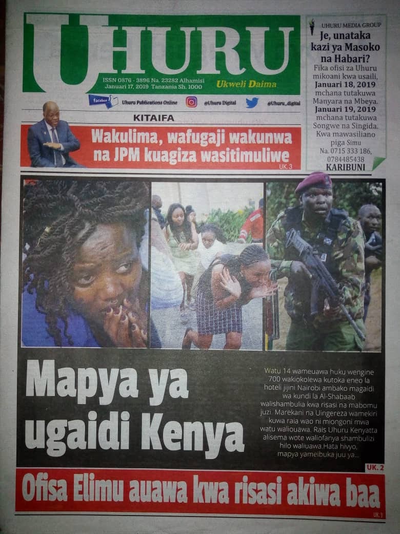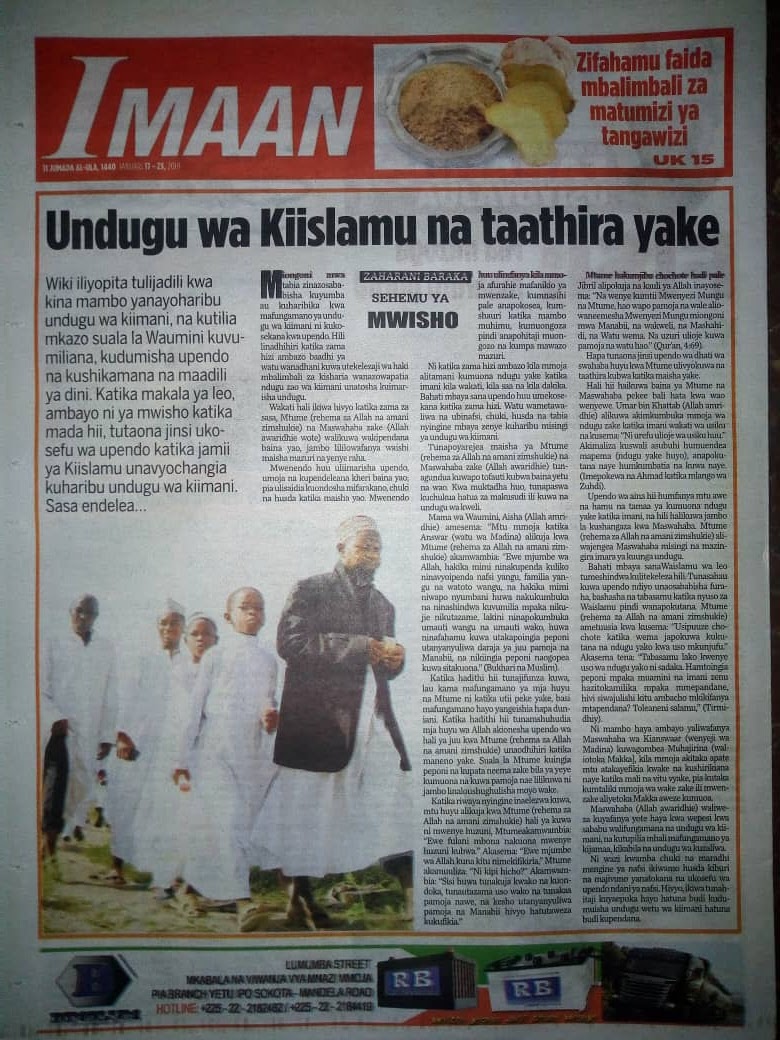 Anuani ya Posta: P.O.Box 46343 Dar-es-Salaam