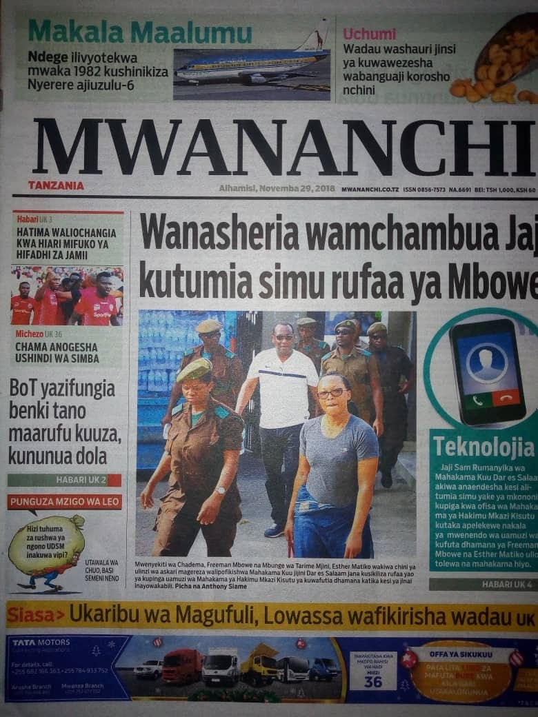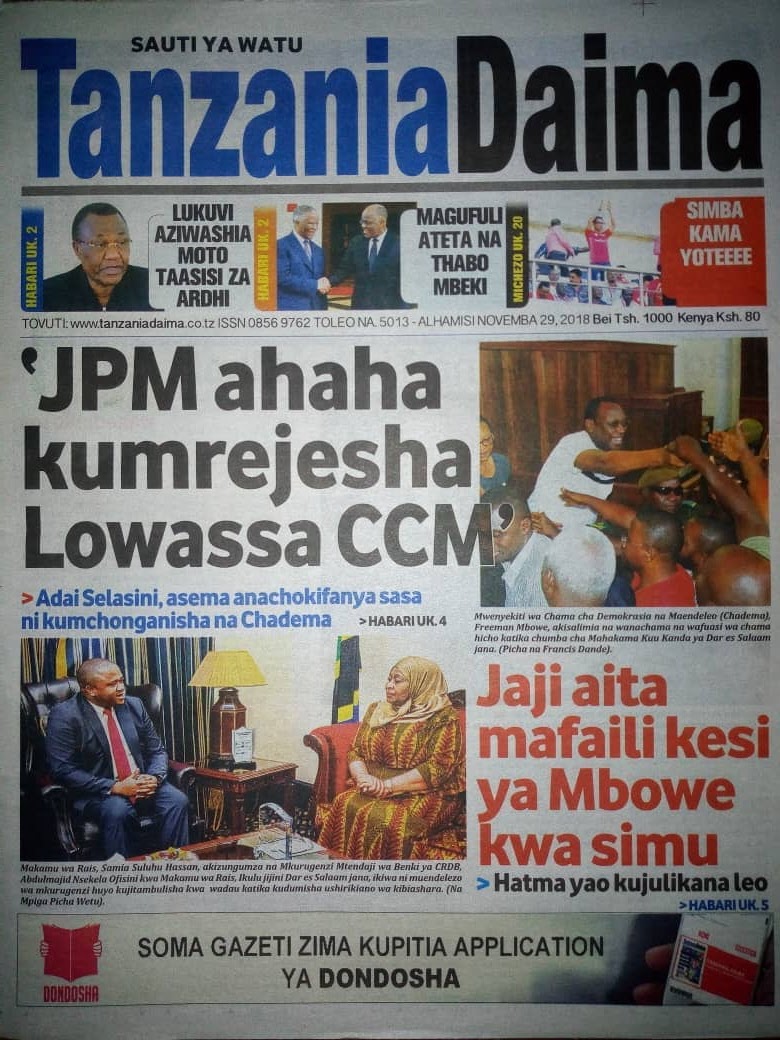 Soma magazeti ya leo Alhamisi tarehe 29/11/2018