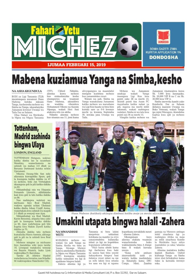 Soma magazeti ya leo Ijumaa 15/02/2019