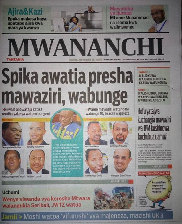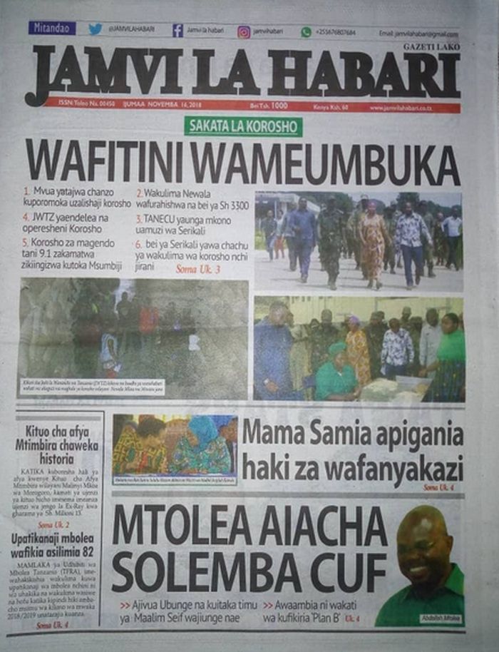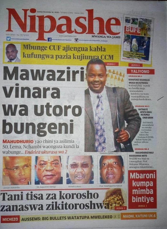 Soma magazeti ya leo Ijumaa 16/11/2018