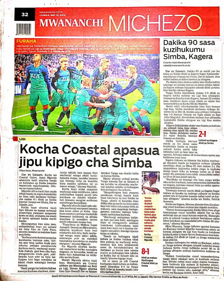 Soma magazeti ya leo Ijumaa tarehe 10/05/2019