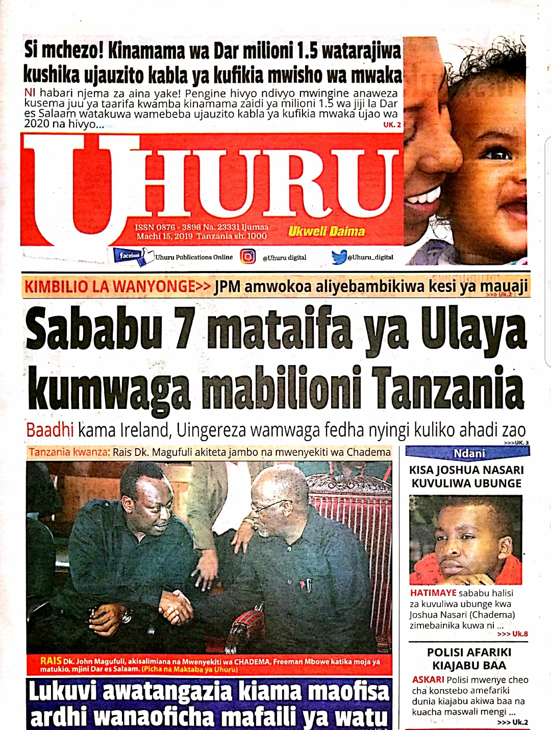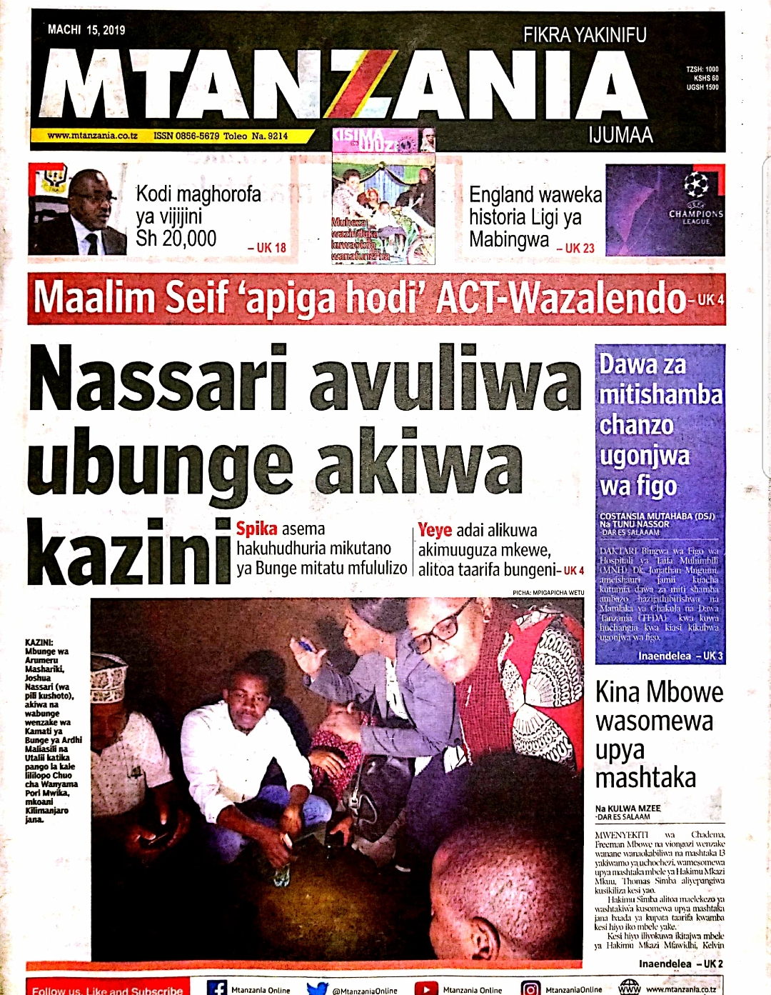 Soma magazeti ya leo Ijumaa tarehe 15/03/2019