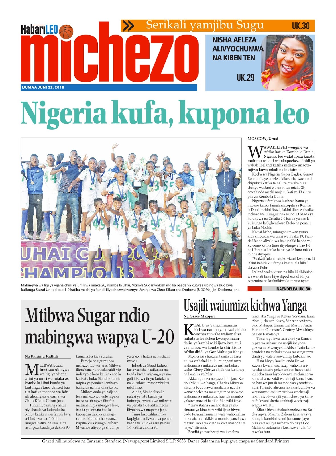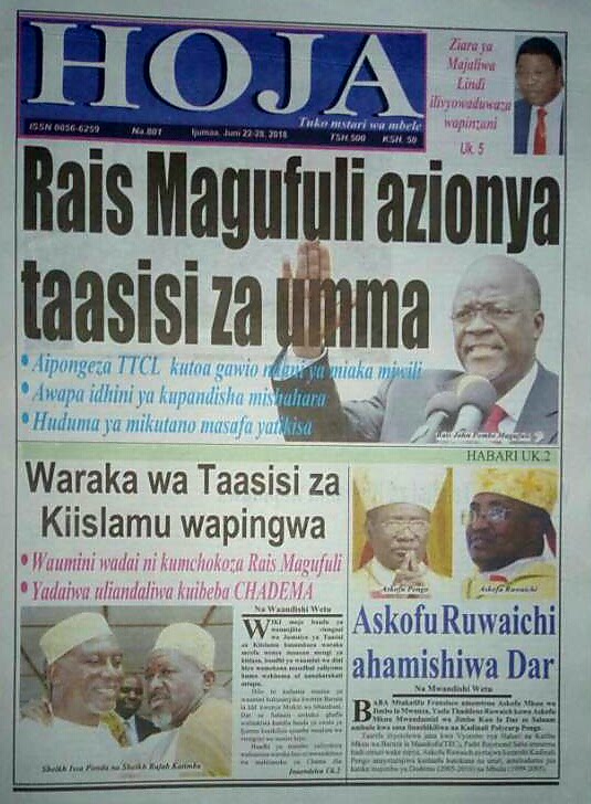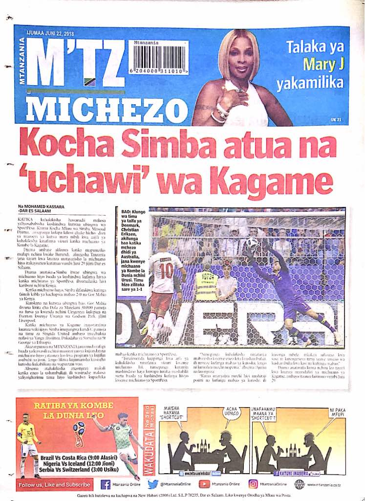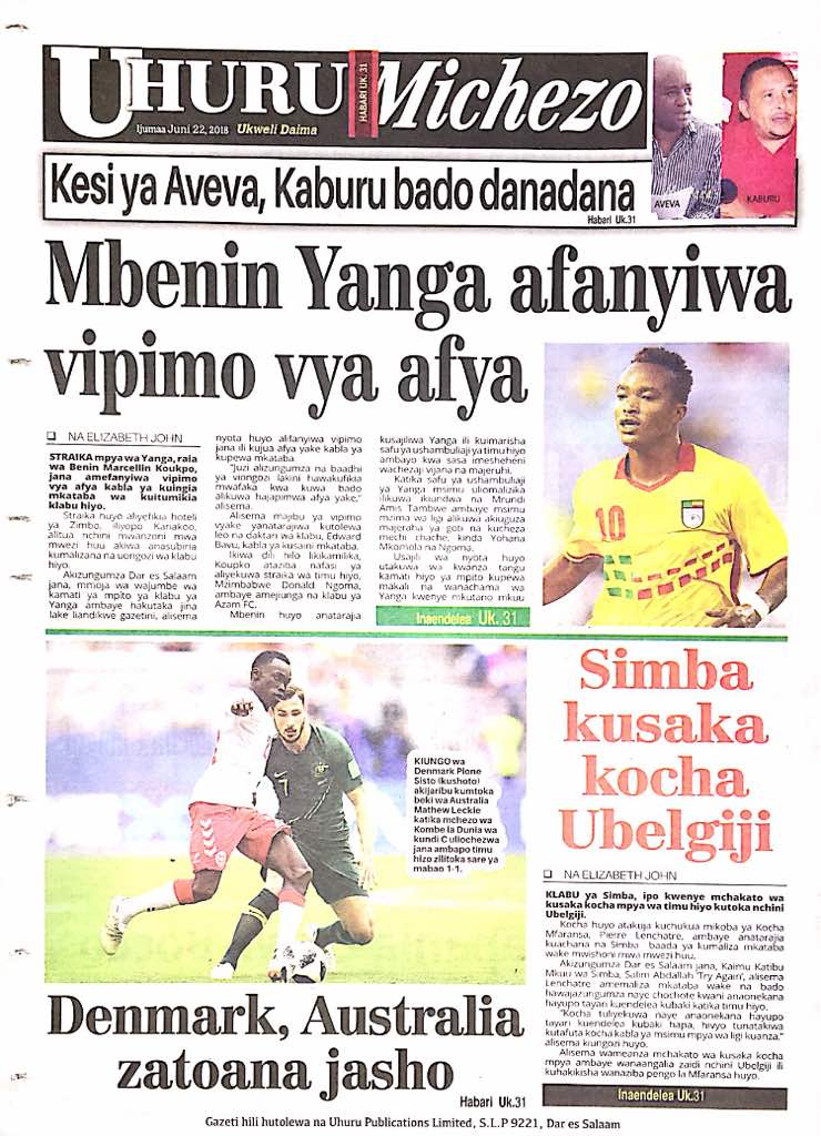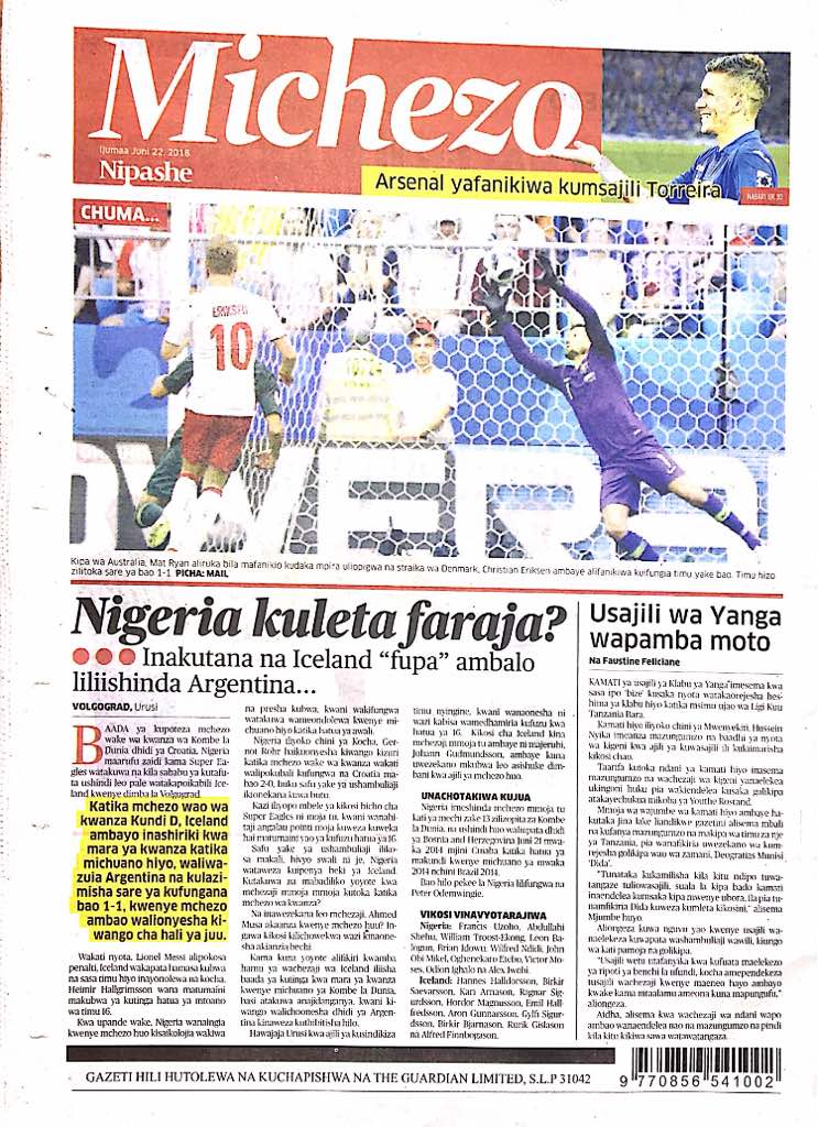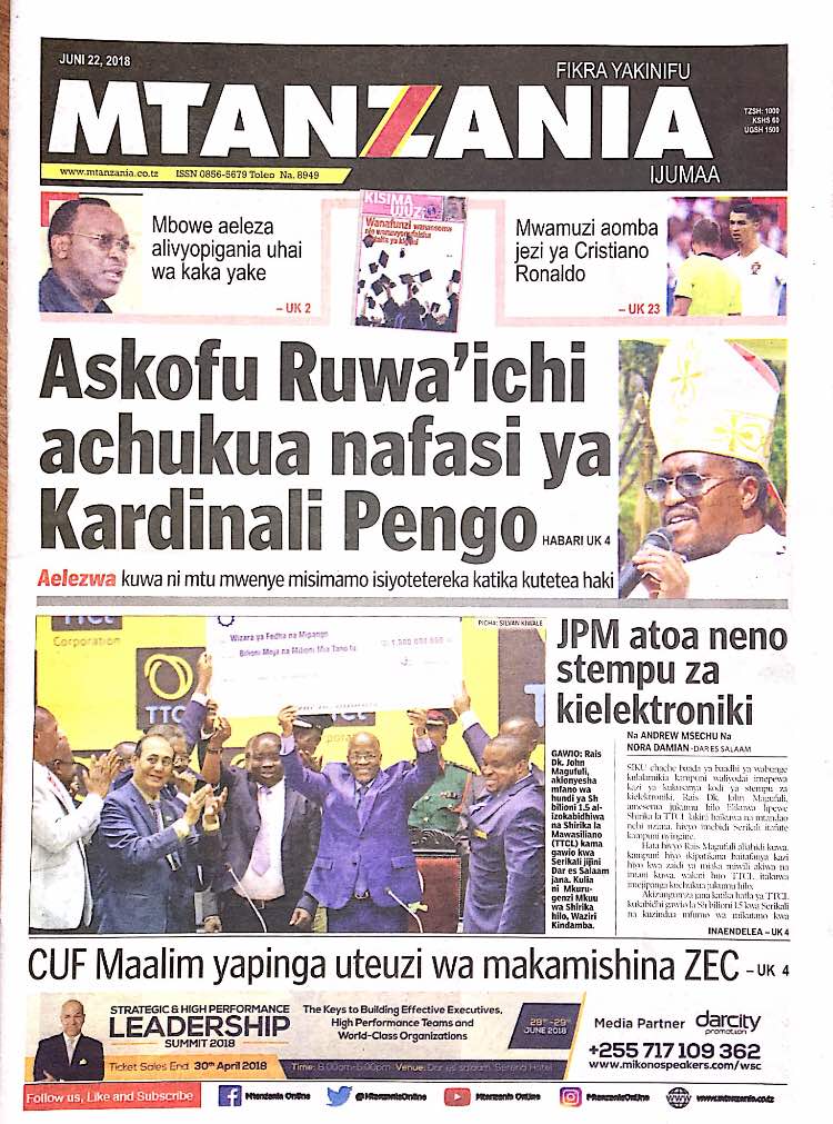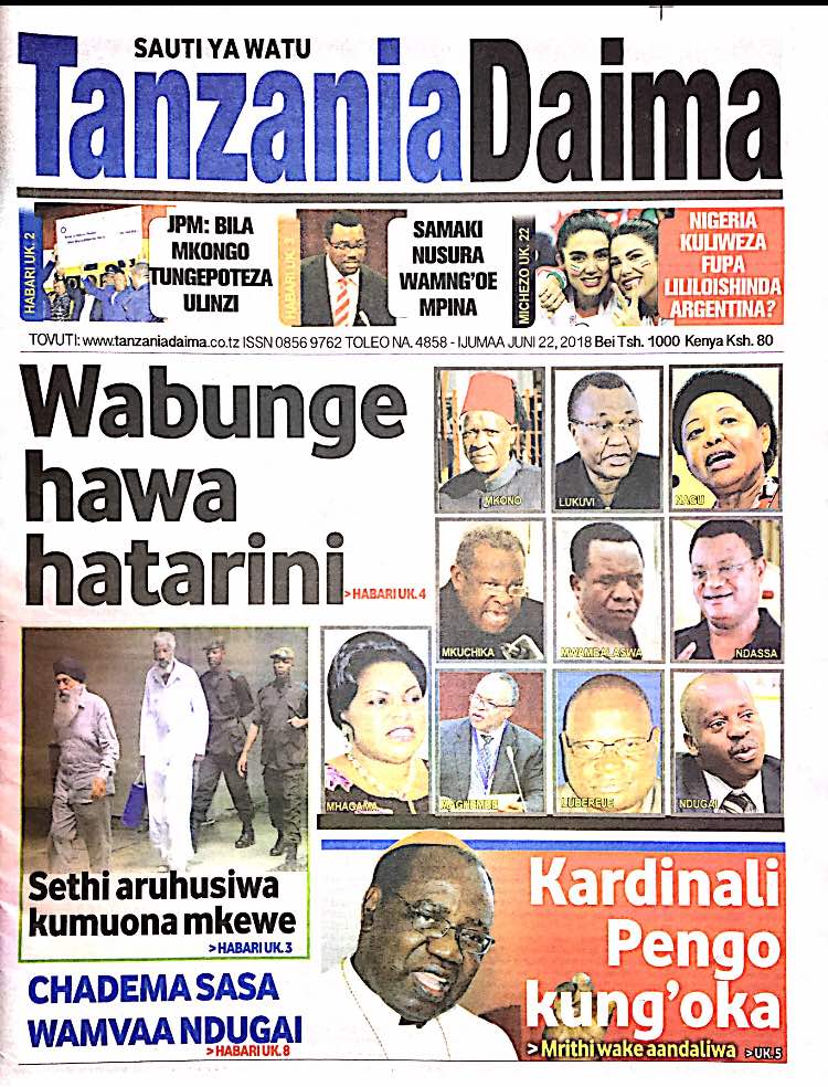 Soma magazeti ya leo Ijumaa tarehe 22/06/2018