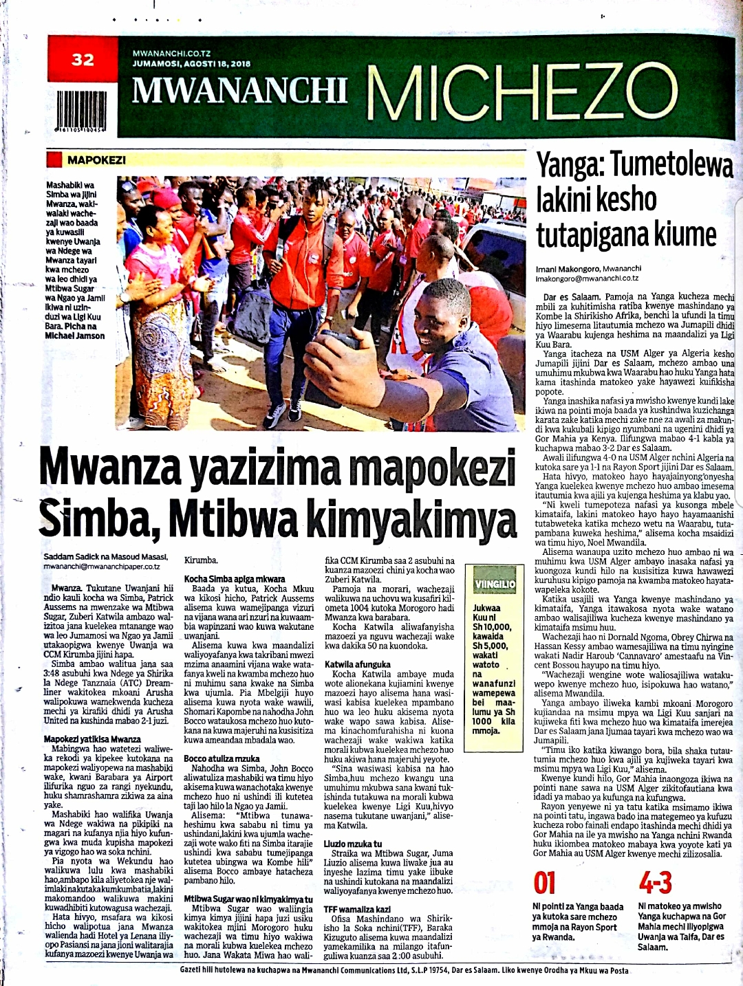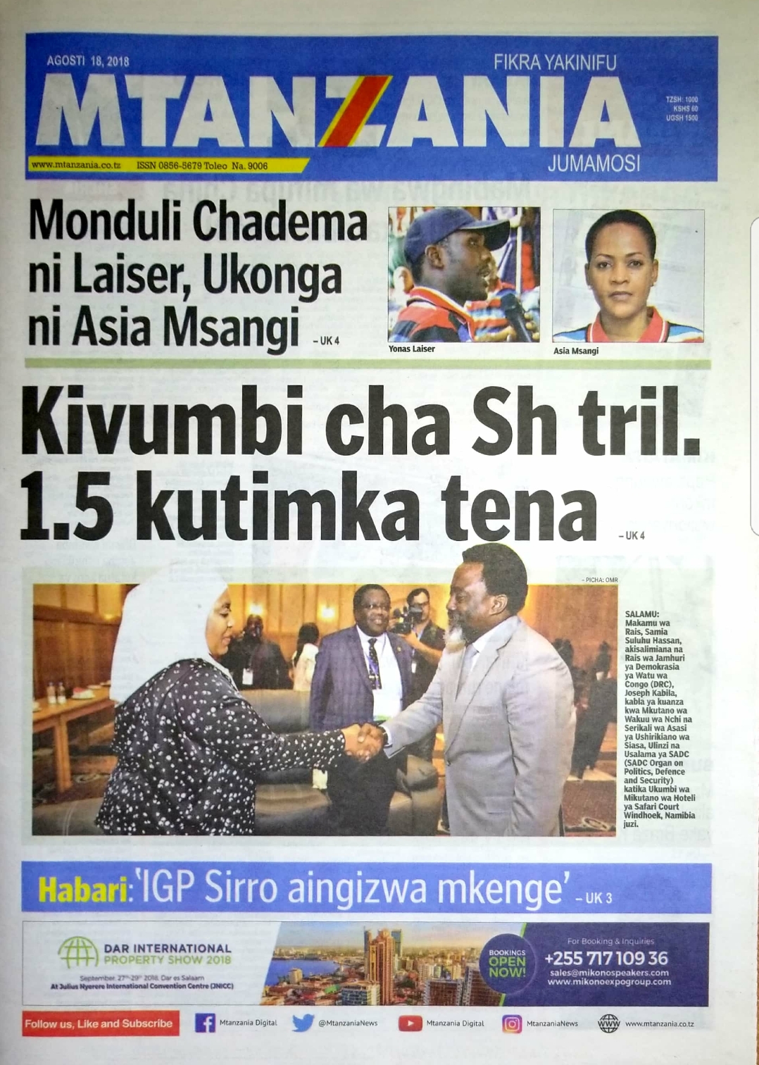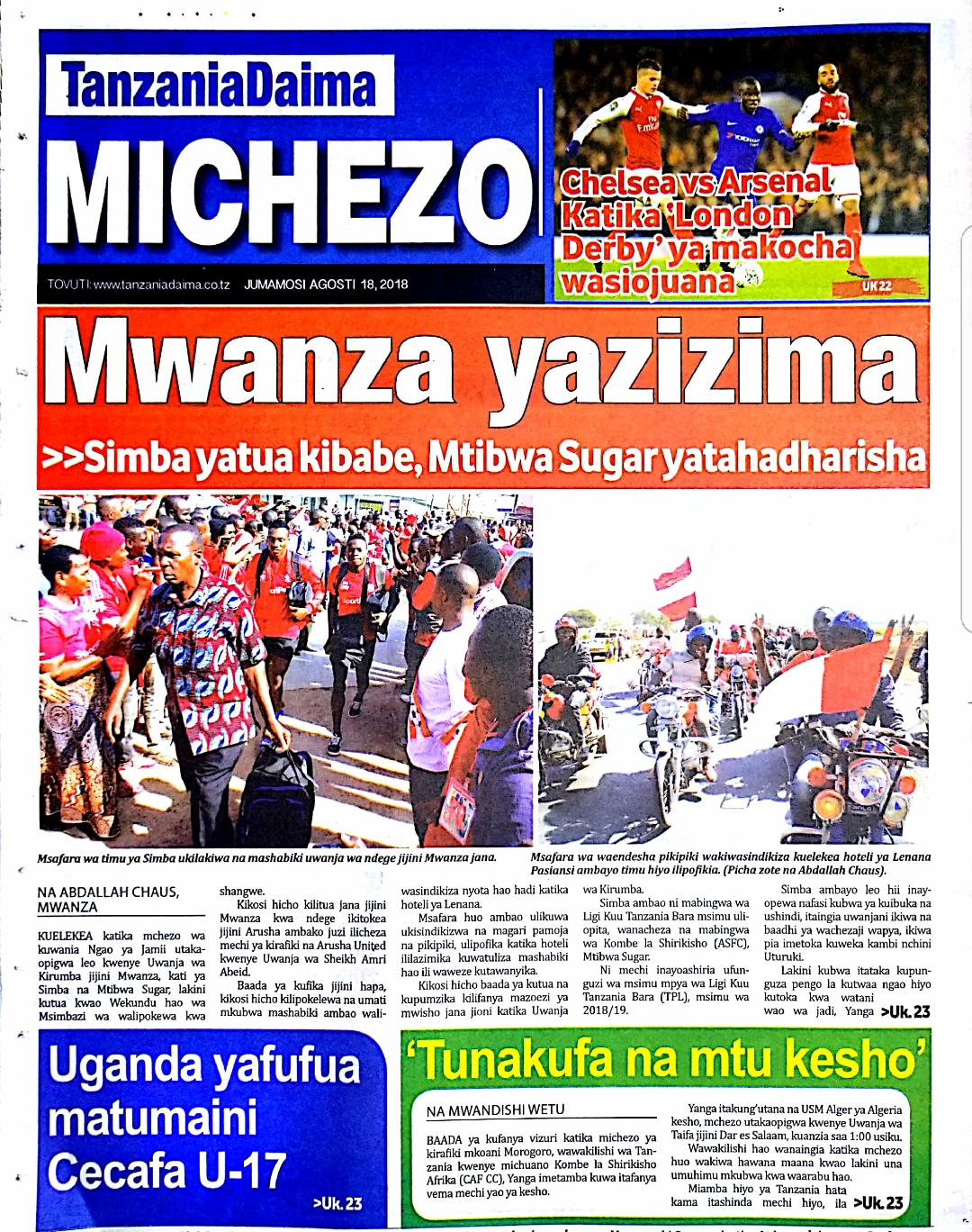 Soma magazeti ya leo Jumamosi tarehe 18/08/2018