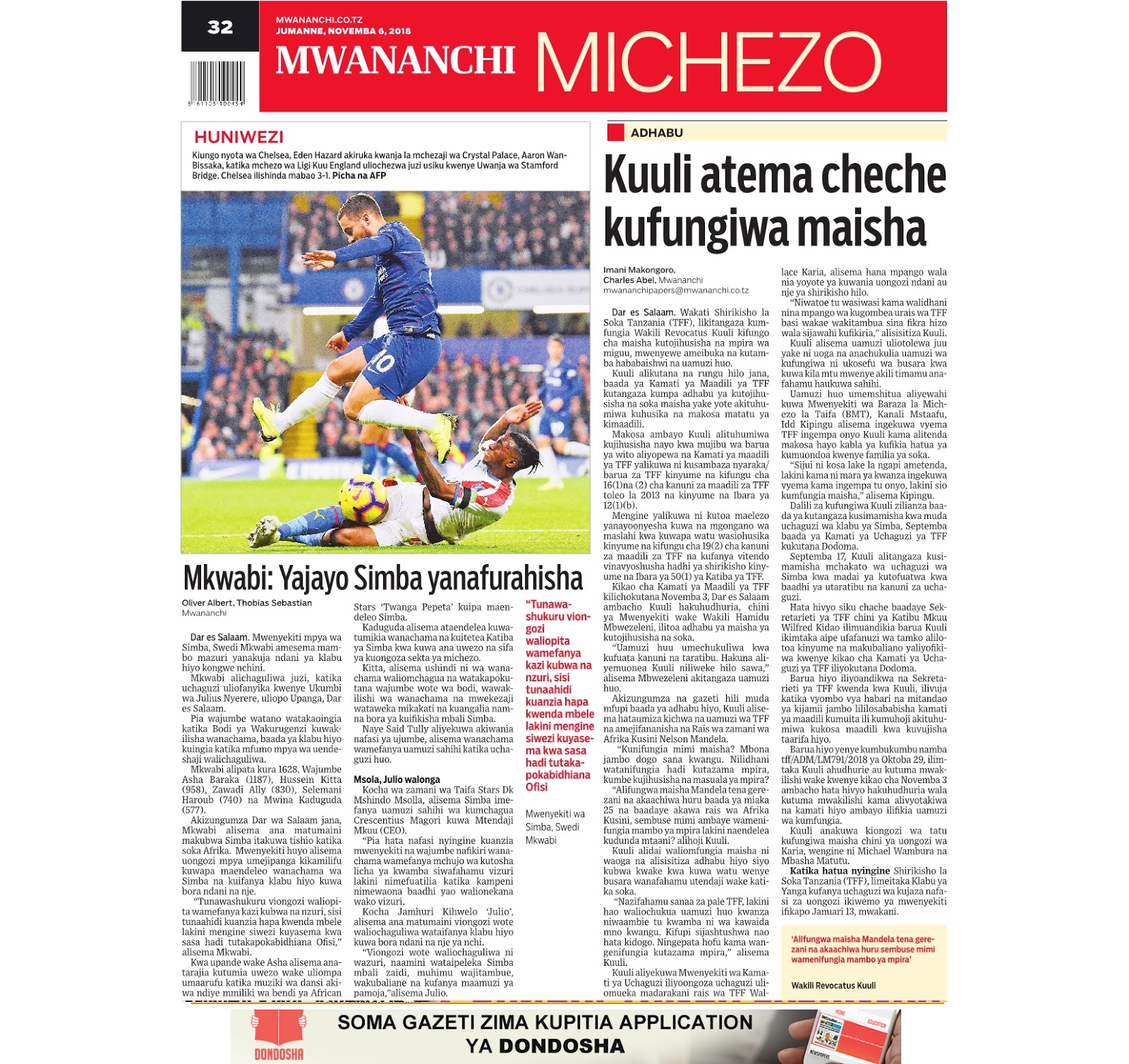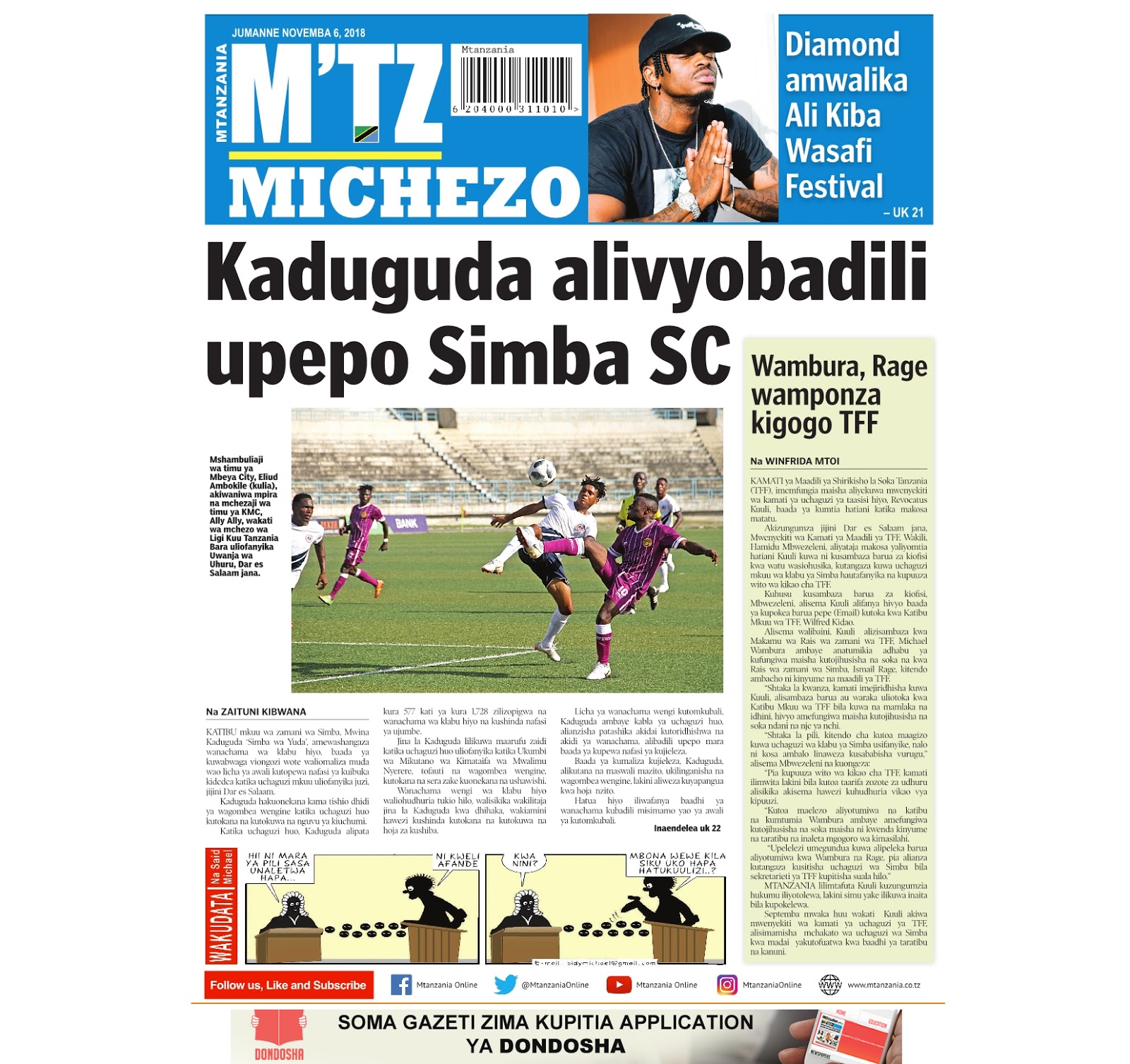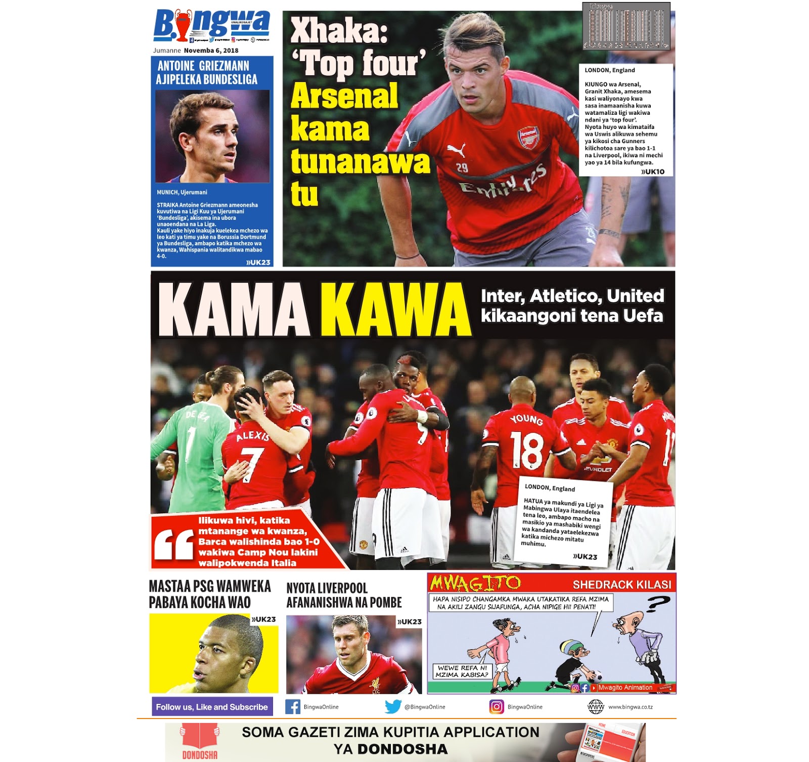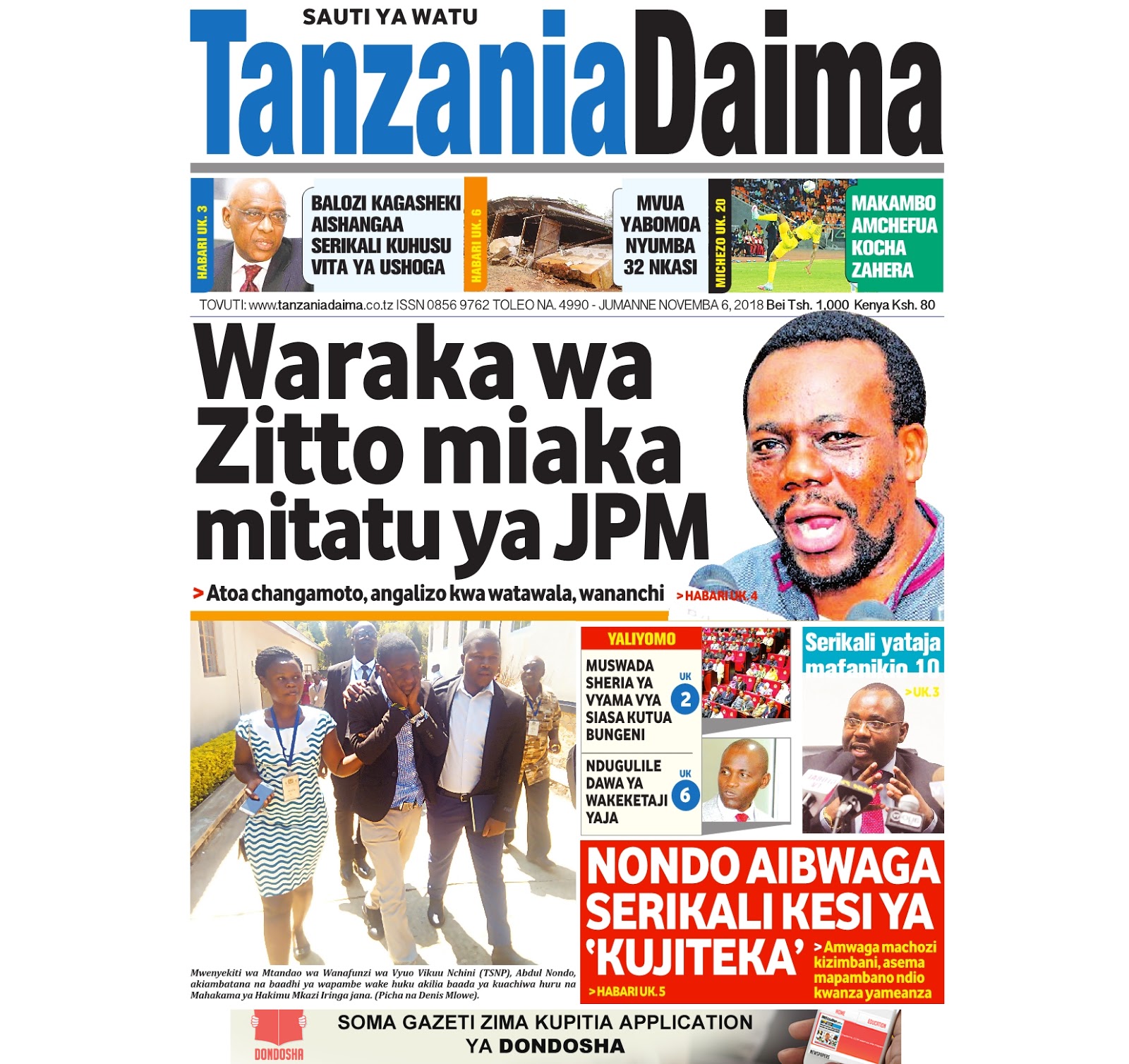 Soma magazeti ya leo Jumanne tarehe 06/11/2018