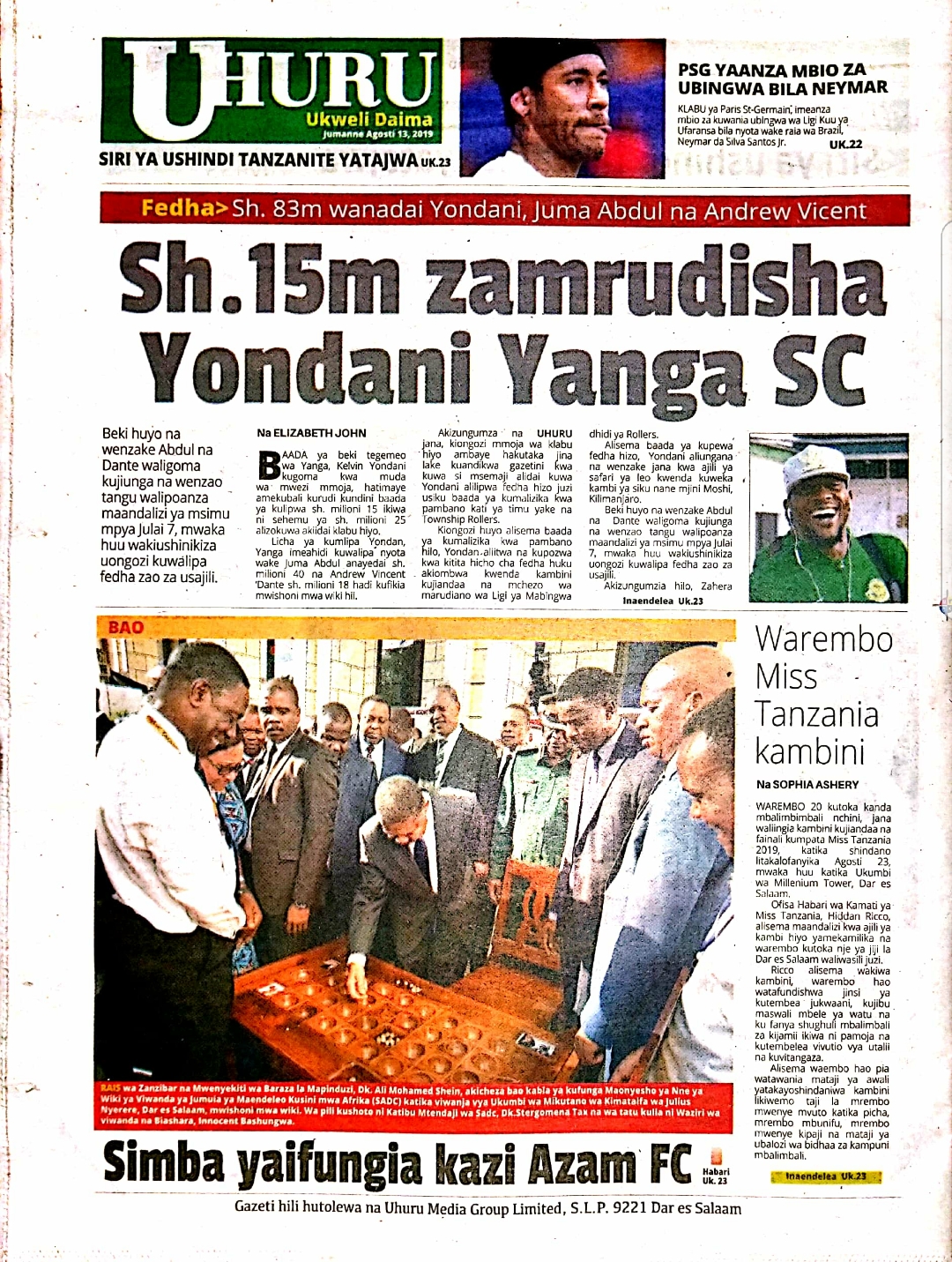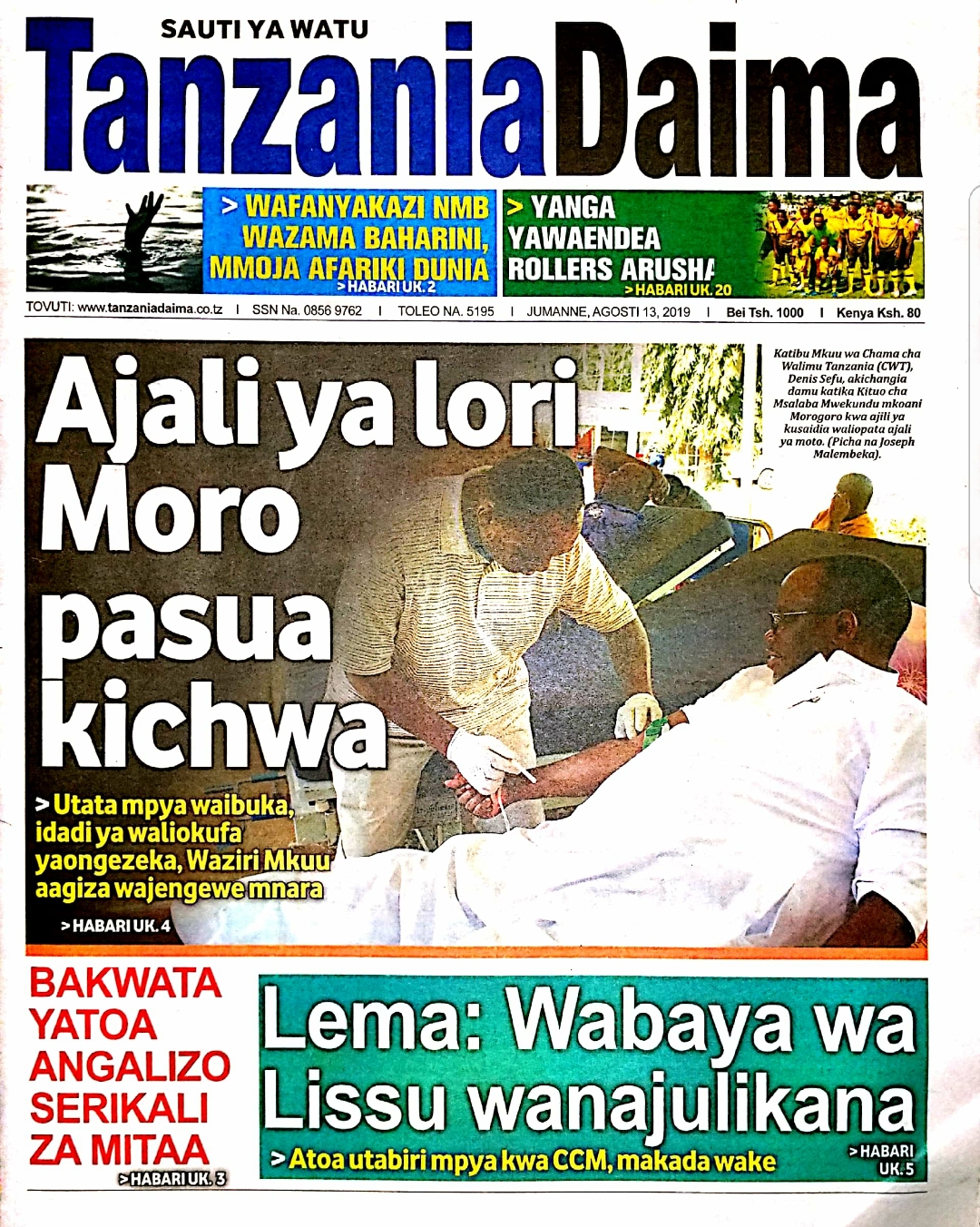 Soma magazeti ya leo Jumanne tarehe 13/08/2019