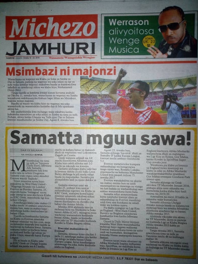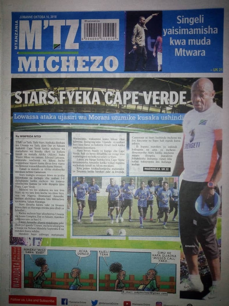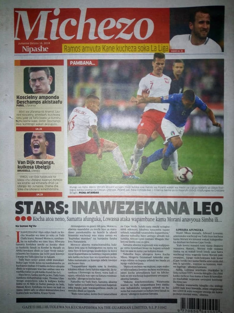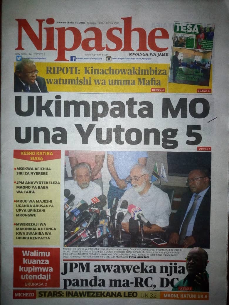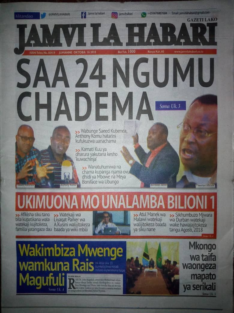 Soma magazeti ya leo Jumanne tarehe 16/10/2018