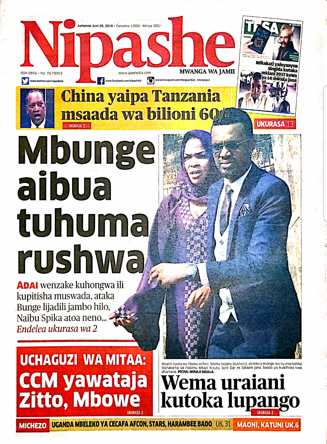 Soma magazeti ya leo Jumanne tarehe 25/06/2019