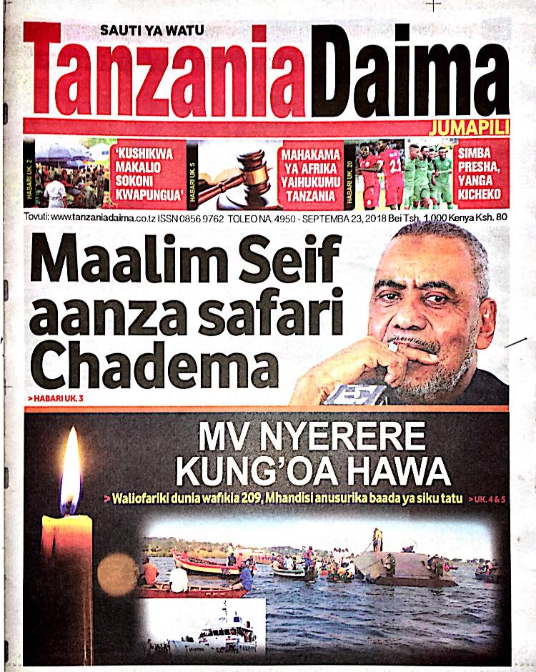 Anuani ya Posta: P.O.Box 46343 Dar-es-Salaam