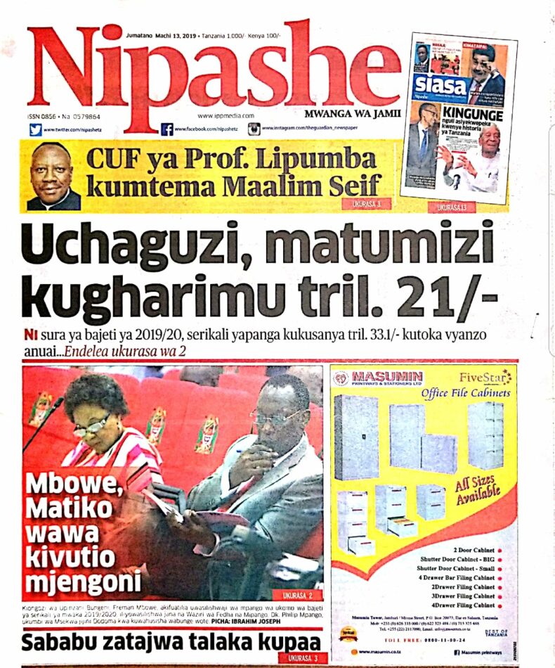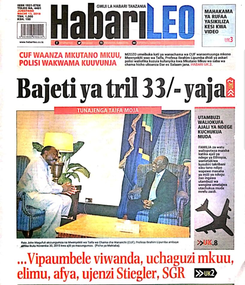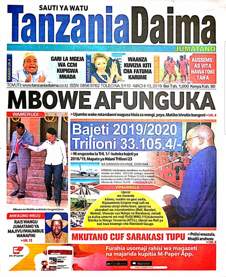 Soma magazeti ya leo Jumatano 13/03/2019