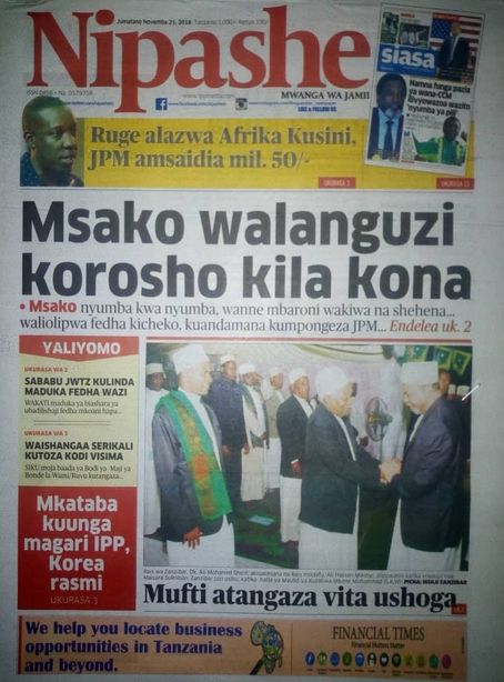 Anuani ya Posta: P.O.Box 46343 Dar-es-Salaam