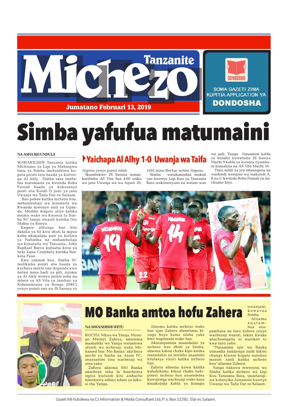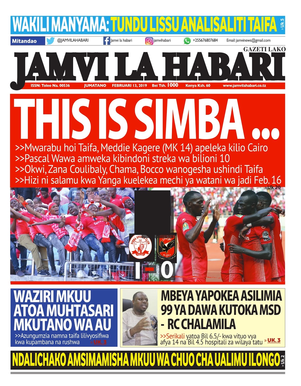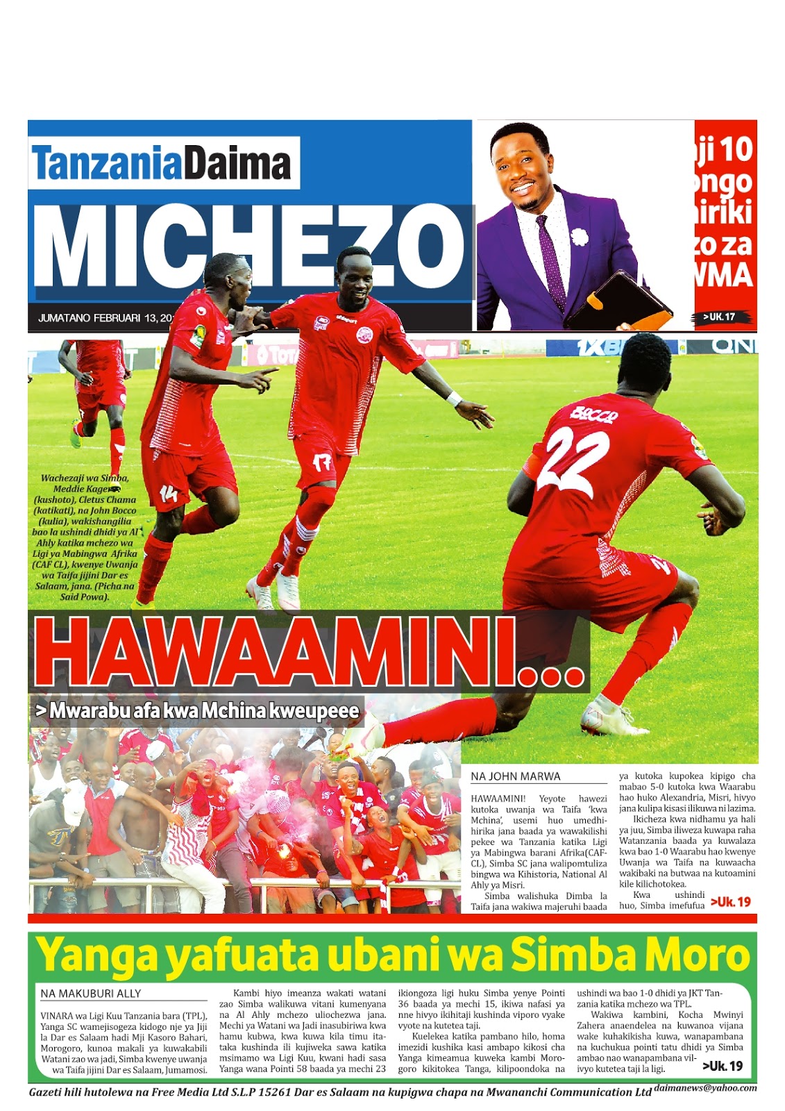 Soma magazeti ya leo Jumatano tarehe 13/02/2019