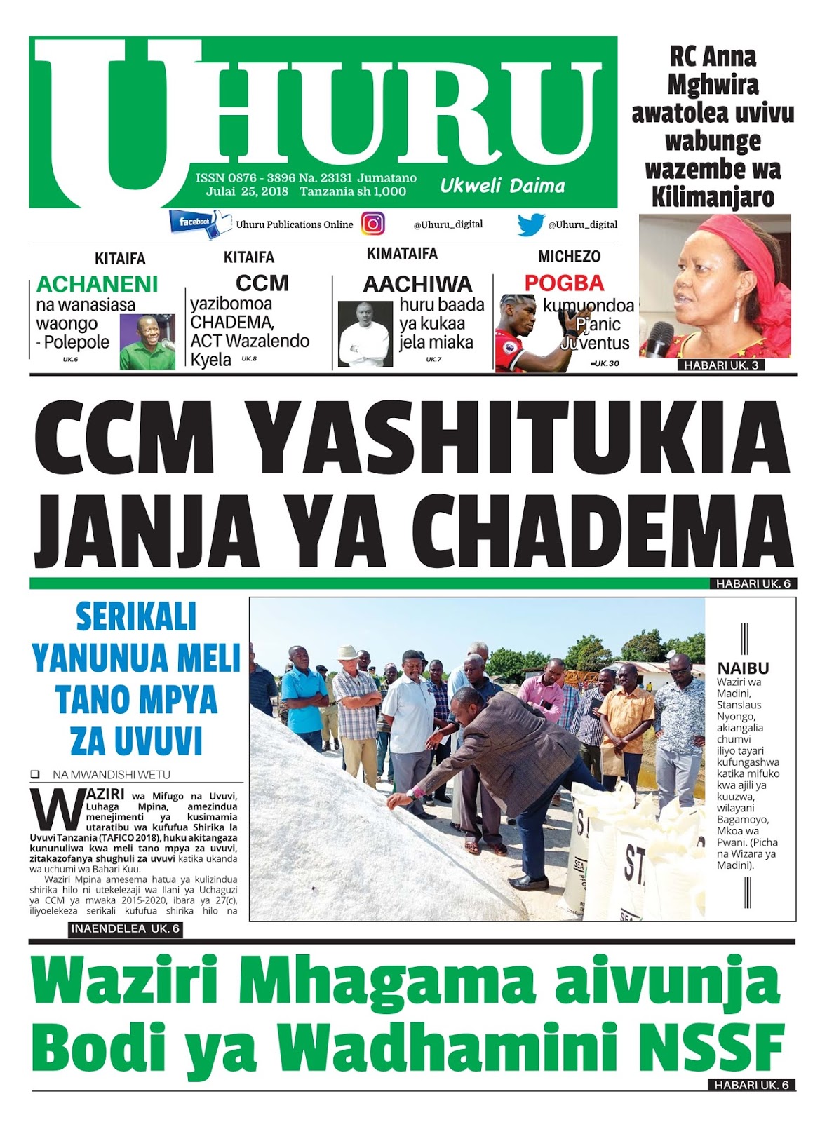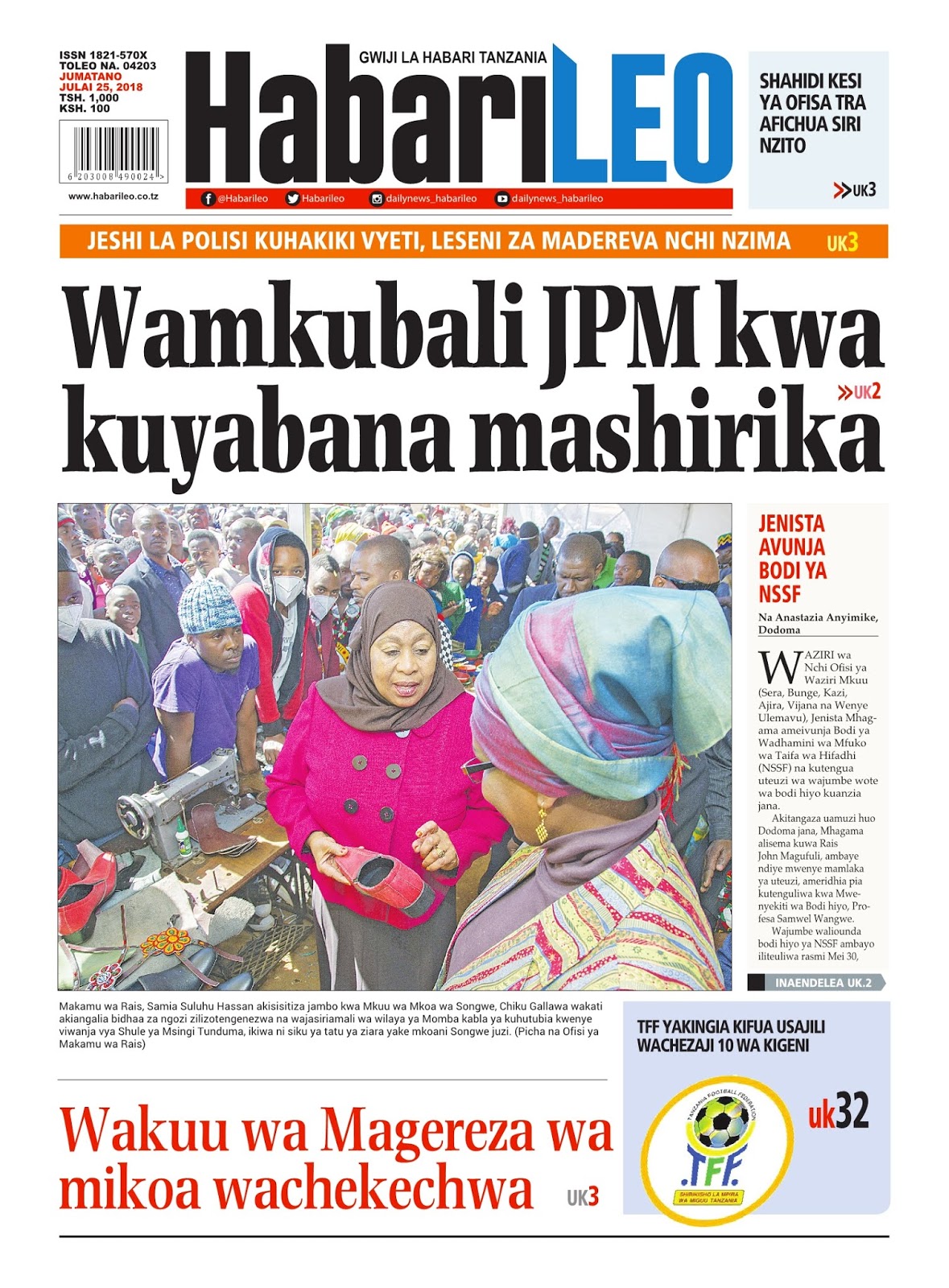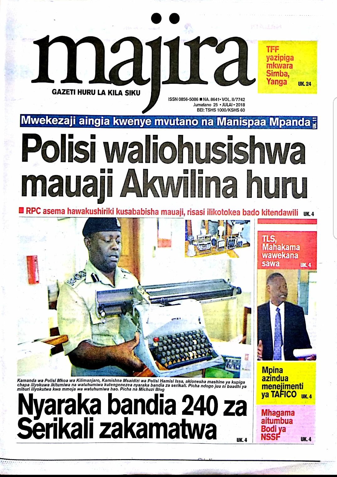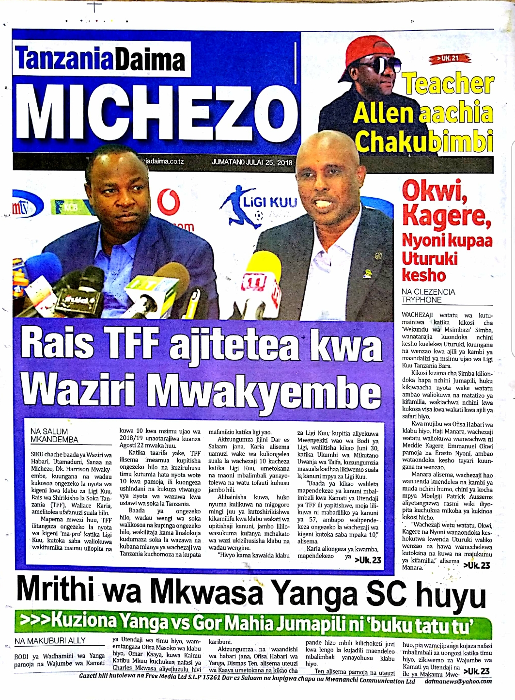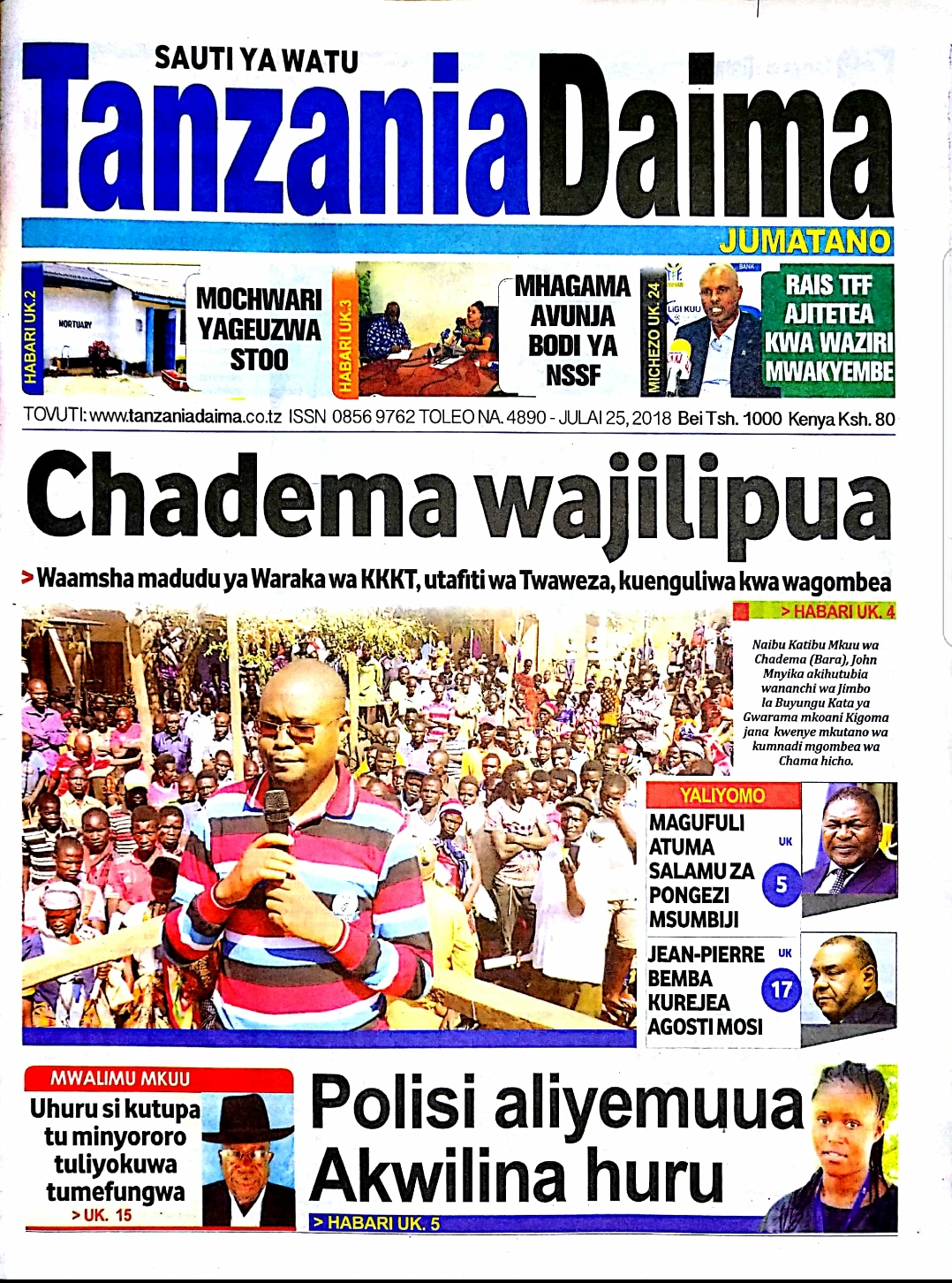 Soma magazeti ya leo Jumatano tarehe 25/07/2018