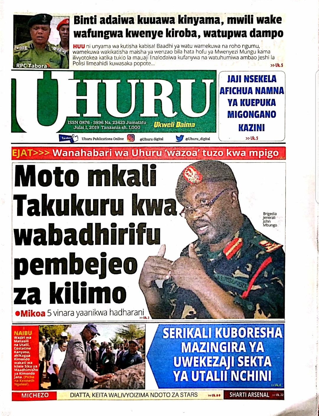 Soma magazeti ya leo Jumatatu tarehe 01/07/2019