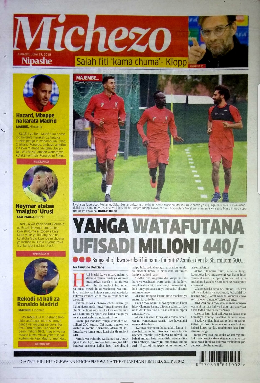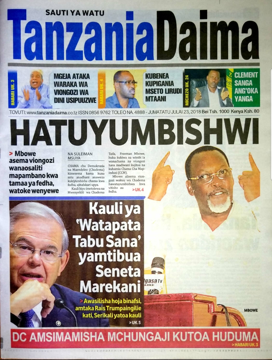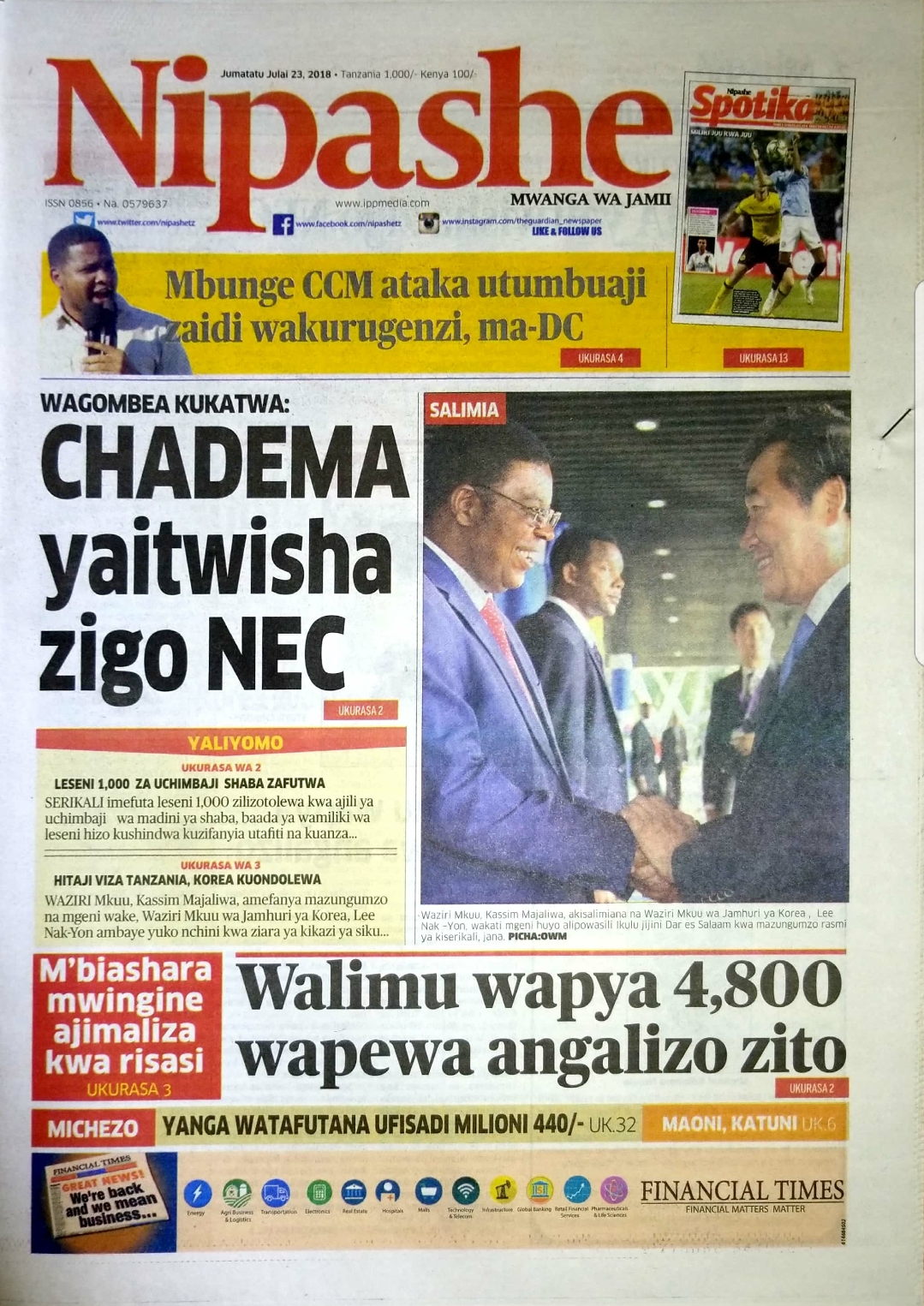 Soma magazeti ya leo Jumatatu tarehe 23/07/2018