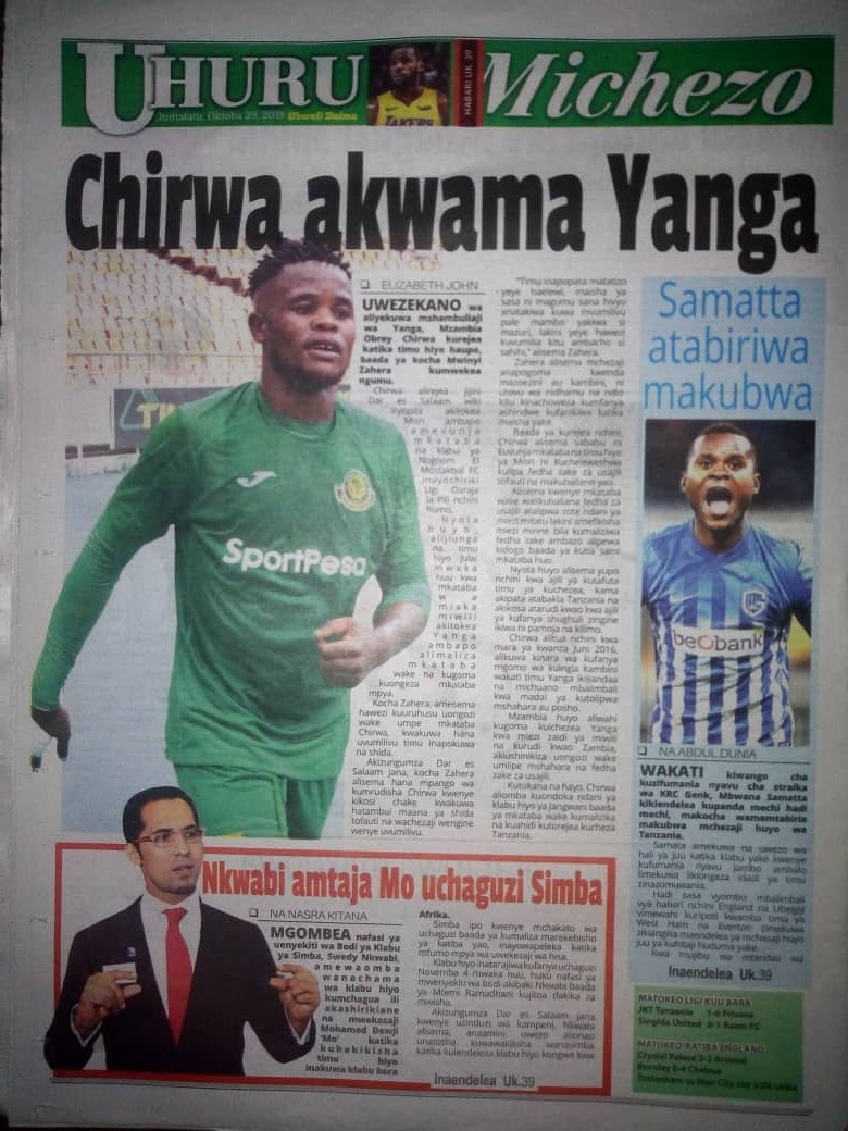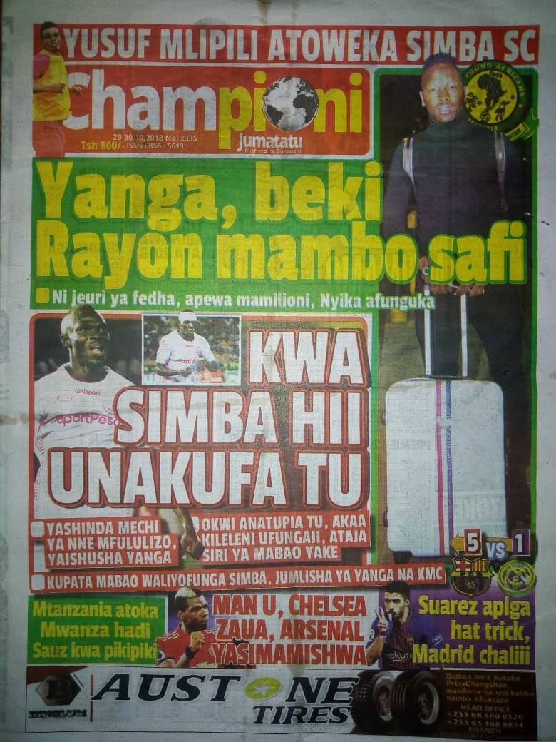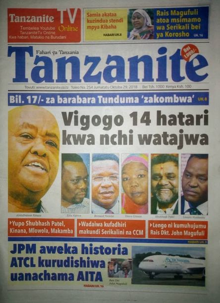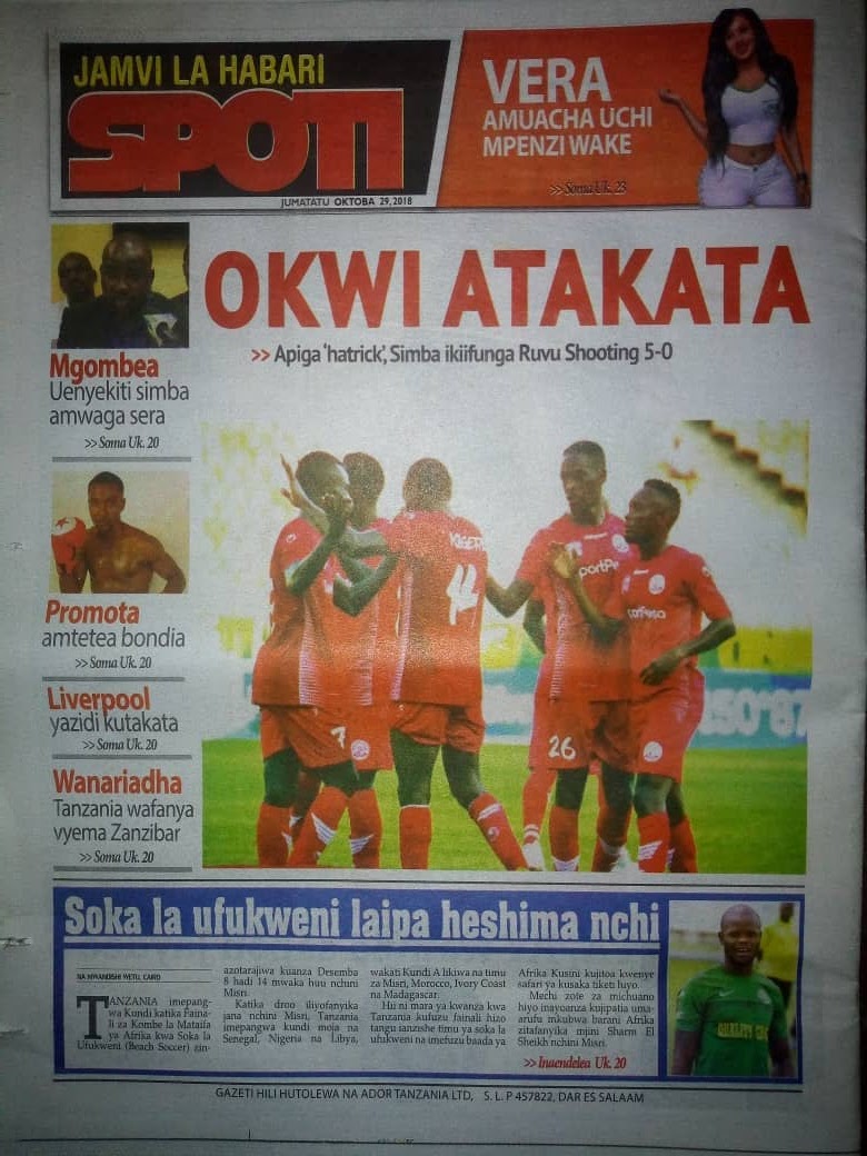 Soma magazeti ya leo Jumatatu tarehe 29/10/2018