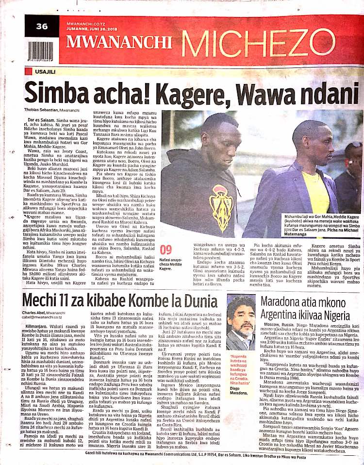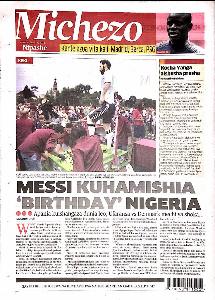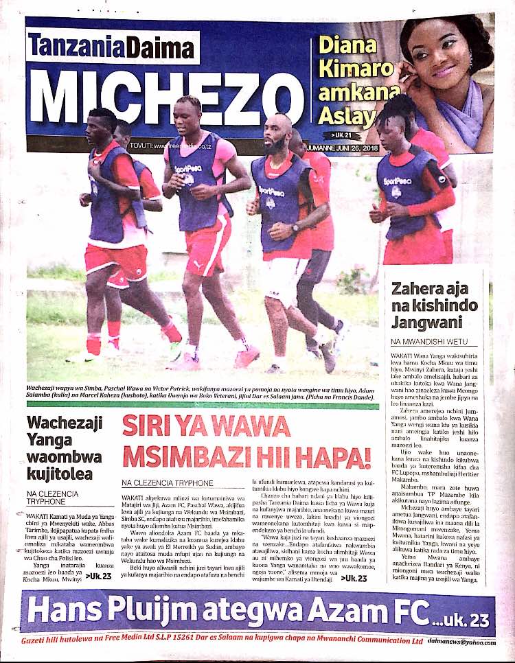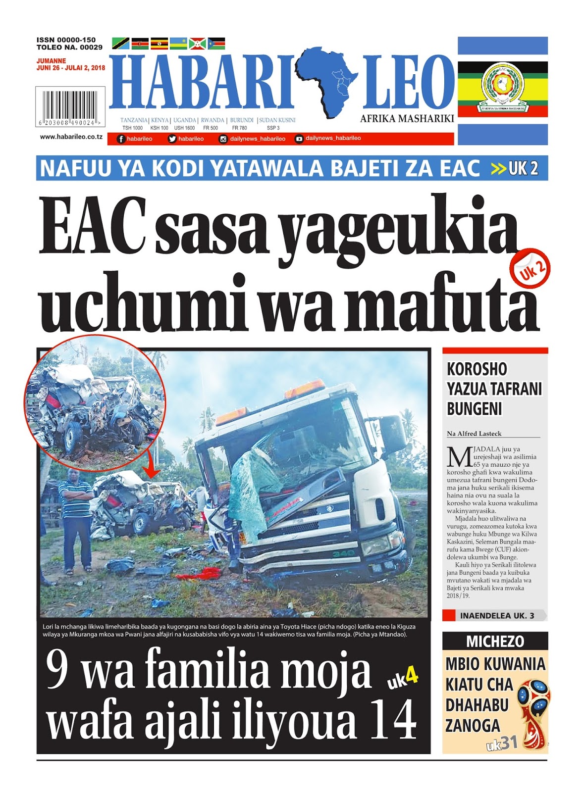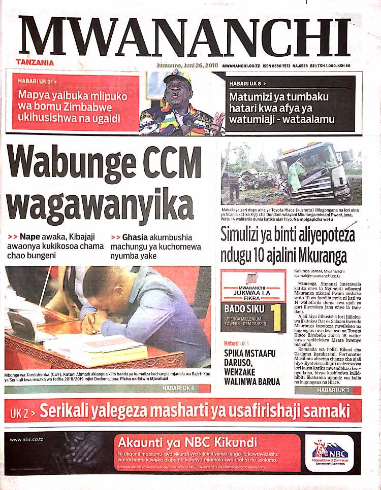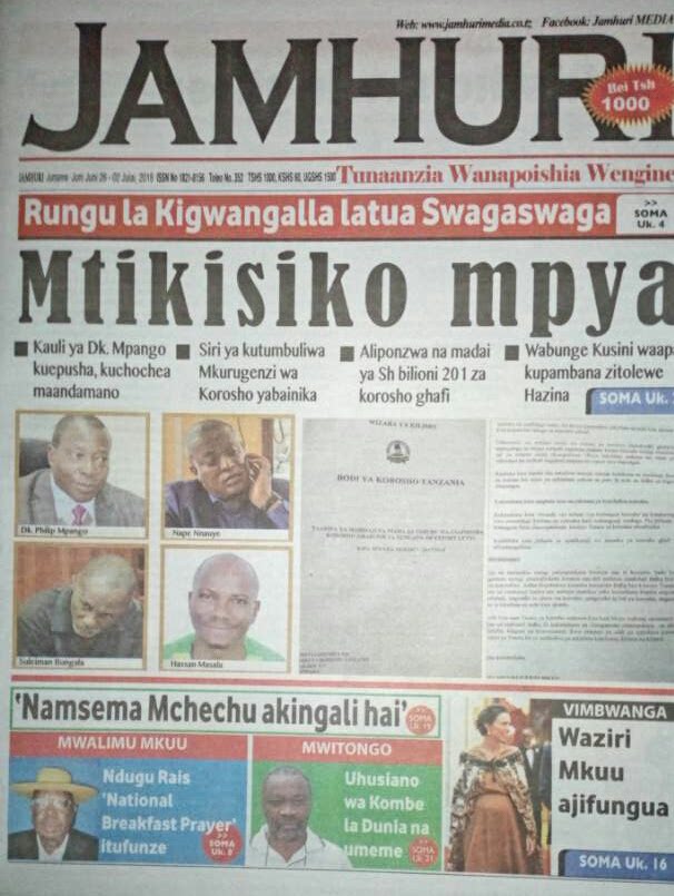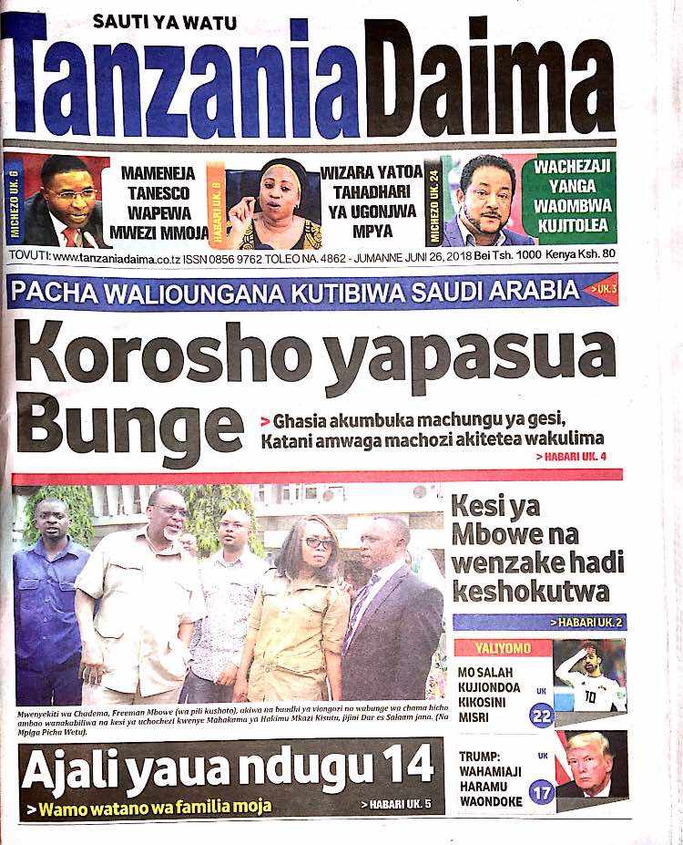 Soma magazeti ya leo Jummanne tarehe 26/06/2018