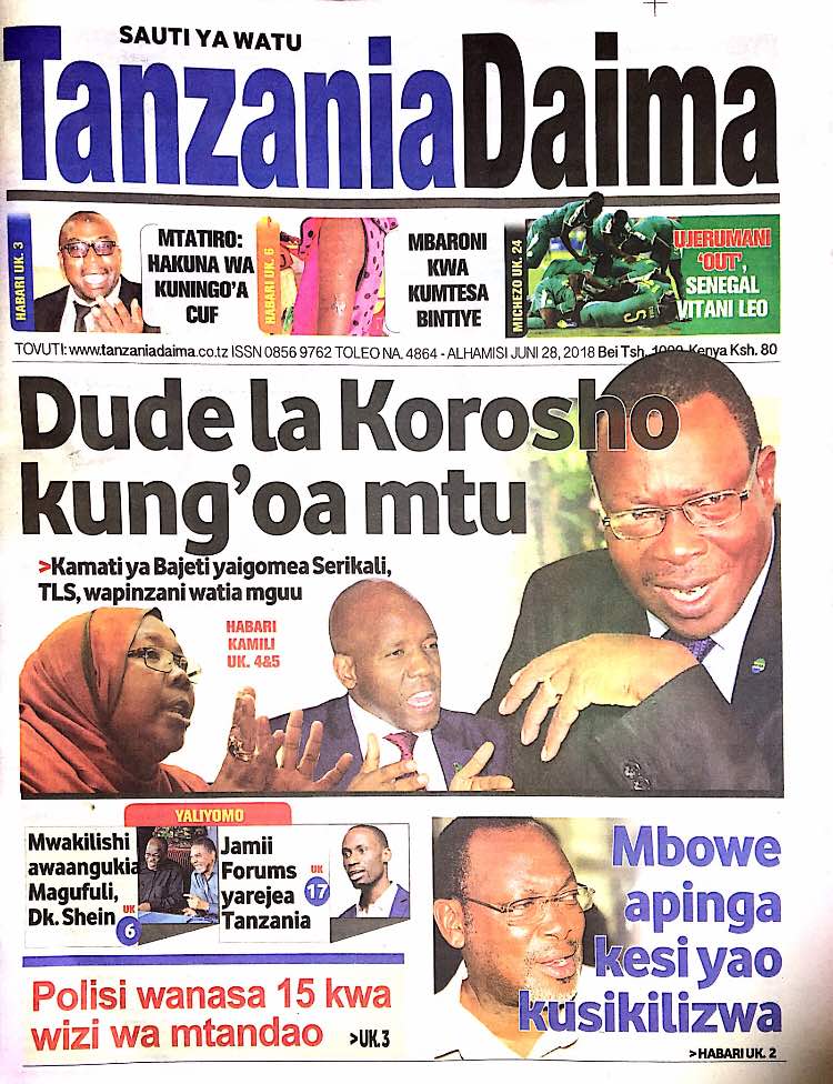 Anuani ya Posta: P.O.Box 46343 Dar-es-Salaam