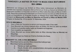 • TANGAZO LA NAFASI YA KAZI YA MUDA KWA WATUMISHI