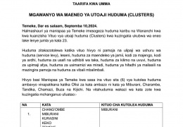 Posted on: September 10th, 2024 TAARIFA MUHIMU. ONGEZEKO LA VITUO VYA HUDUMA ZA MAPATO (CLUSTERS) ...