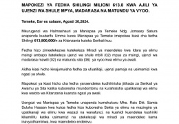 Posted on: August 30th, 2024 Taarifa kwa Umma. Mapokezi ya fedha kwa ajili ya ujenzi wa shule mpya Temeke...
