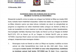 Posted on: November 14th, 2024 TAARIFA KWA UMMA, MUHIMU...